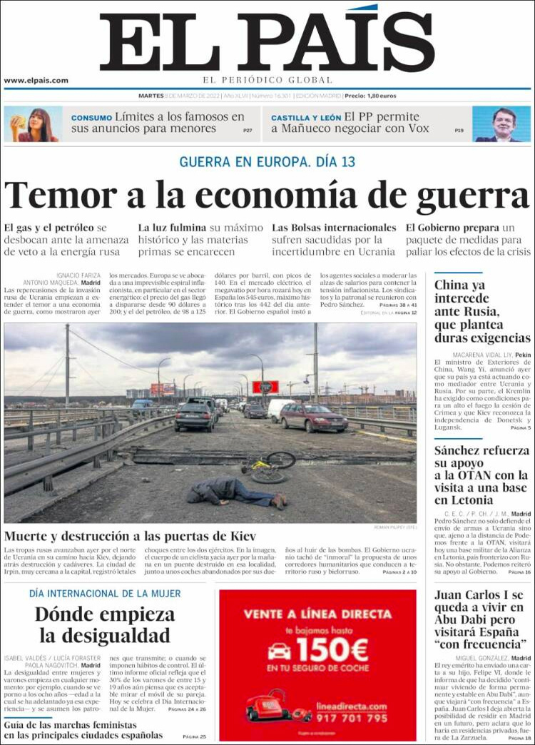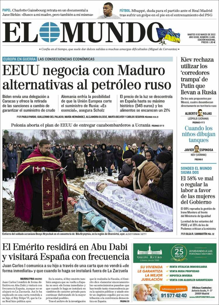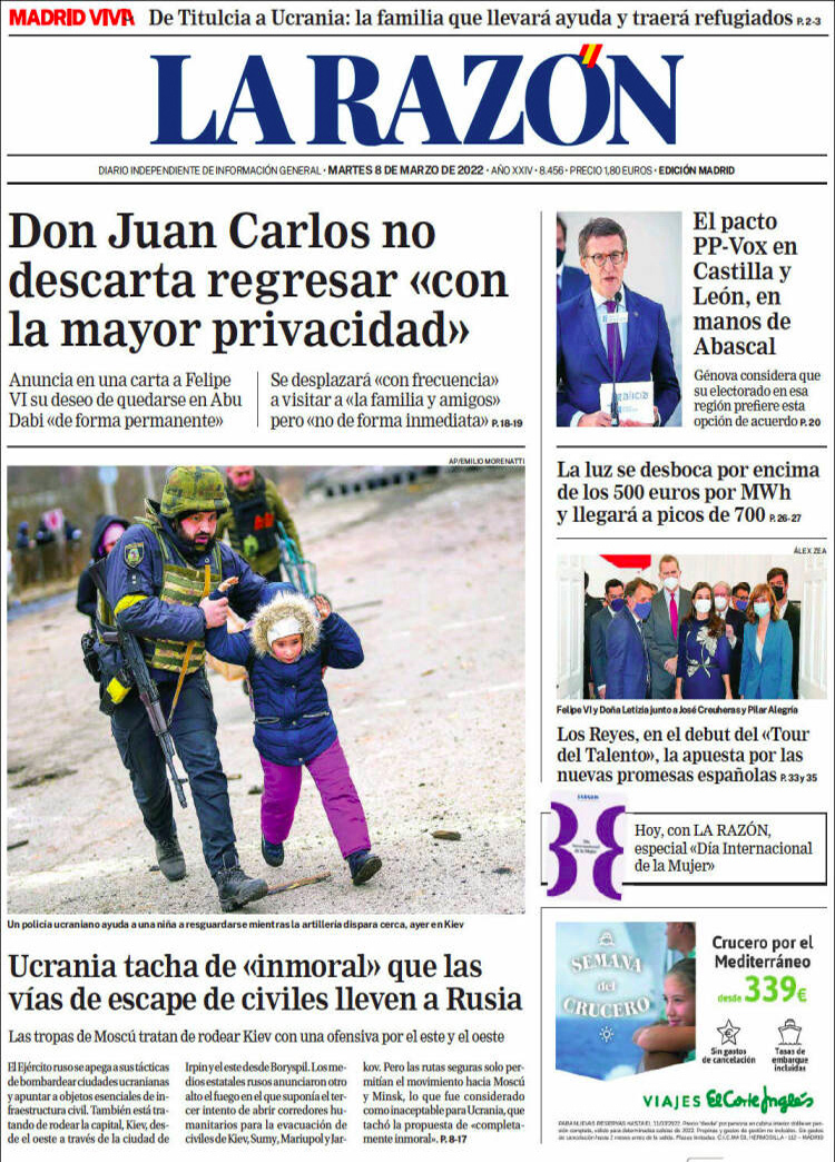 Principales portadas de hoy 8 de Marzo de 2022