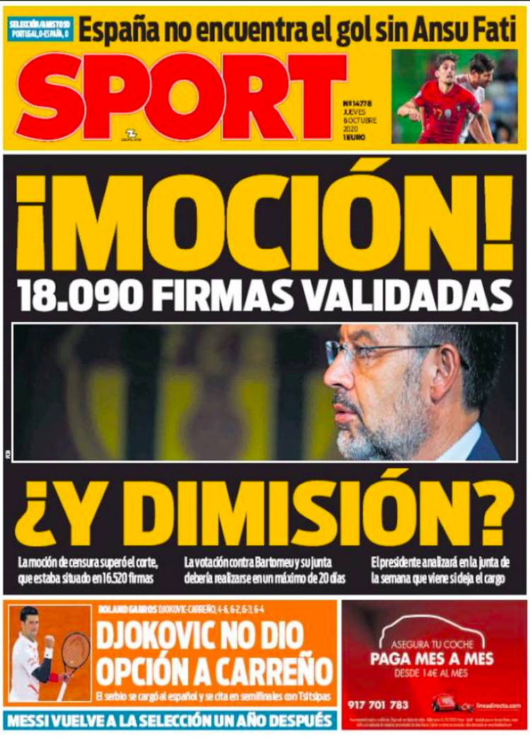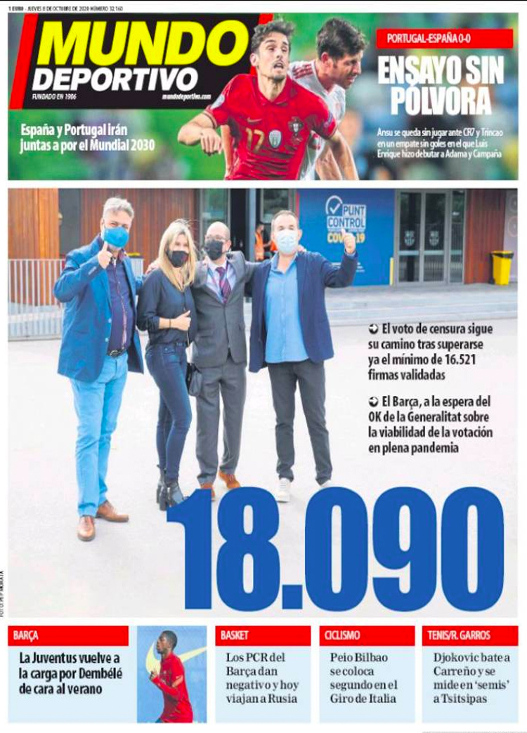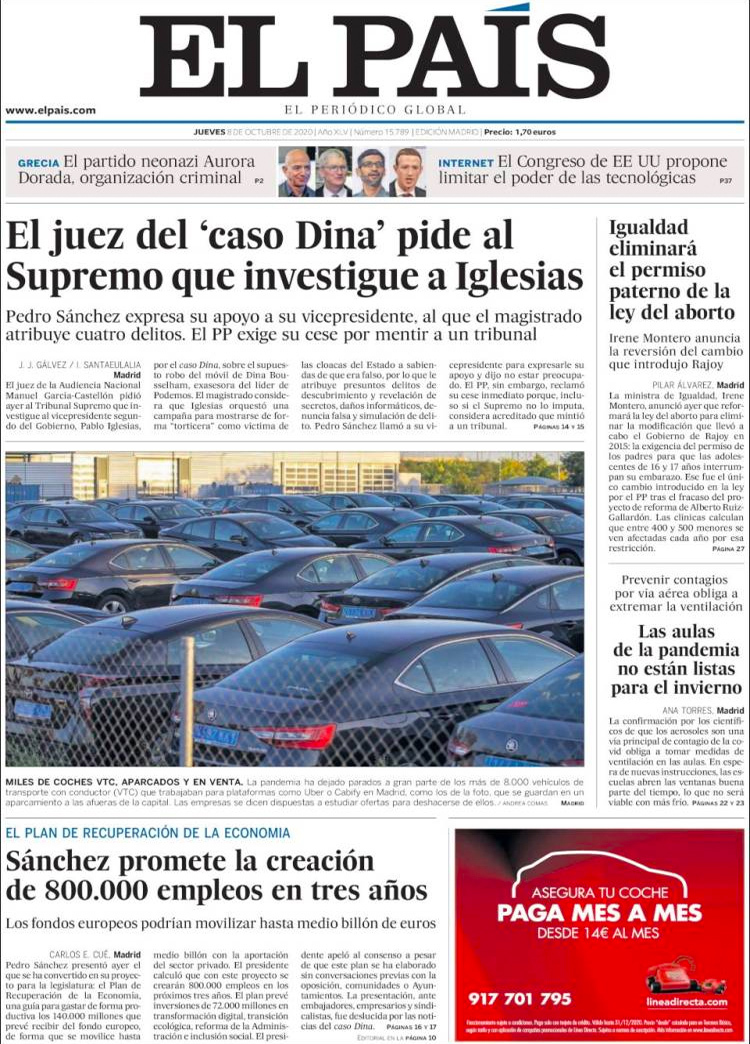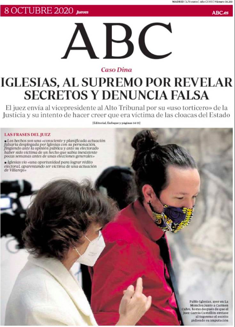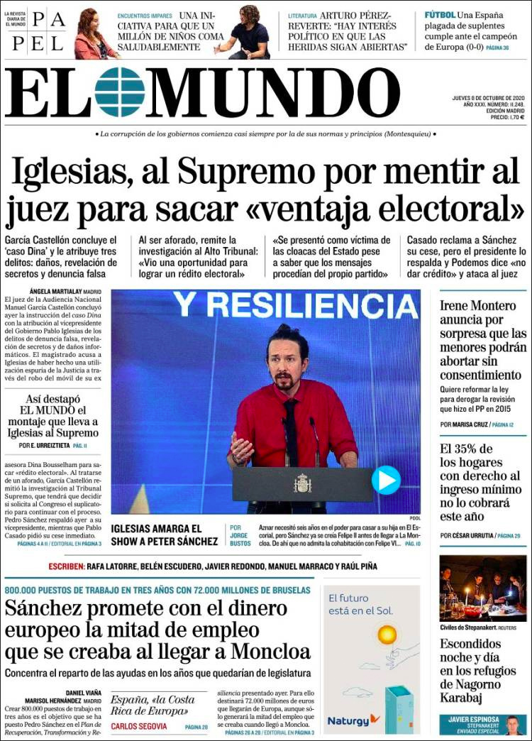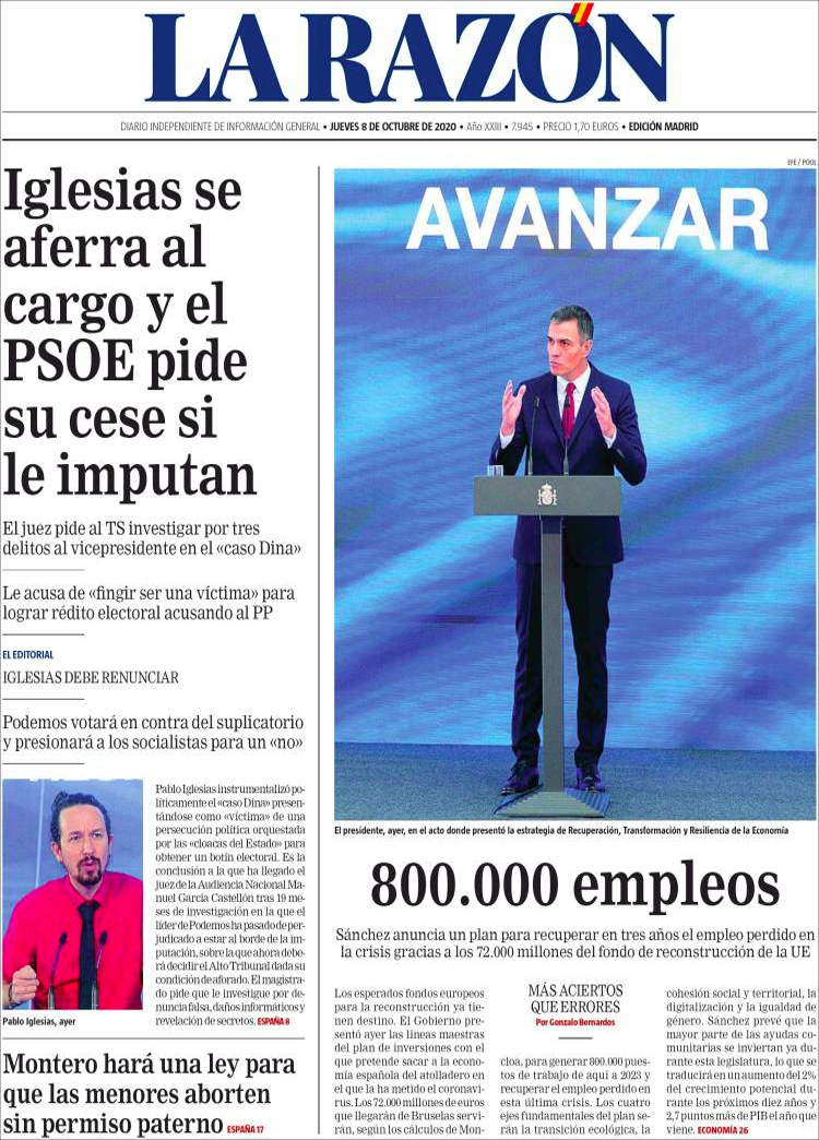 Principales portadas de hoy 8 de Octubre de 2020