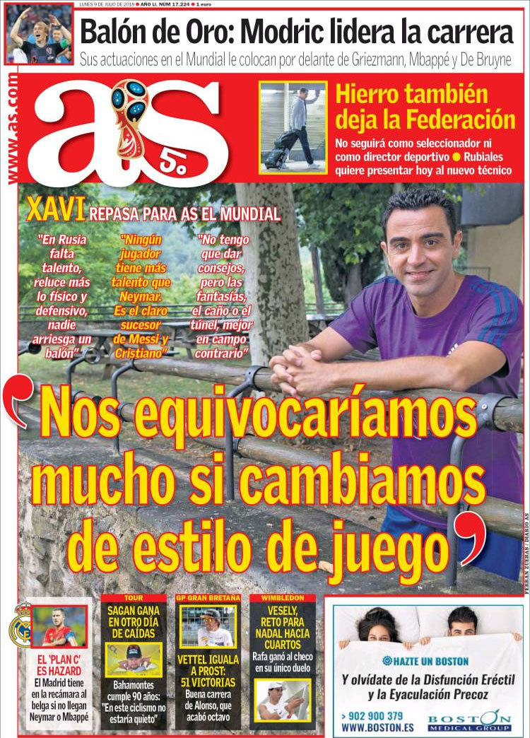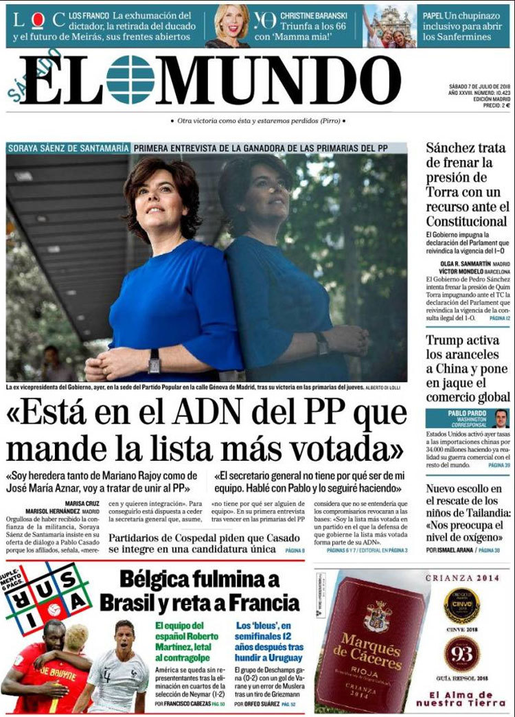 Principales portadas de hoy 9 de Julio de 2018