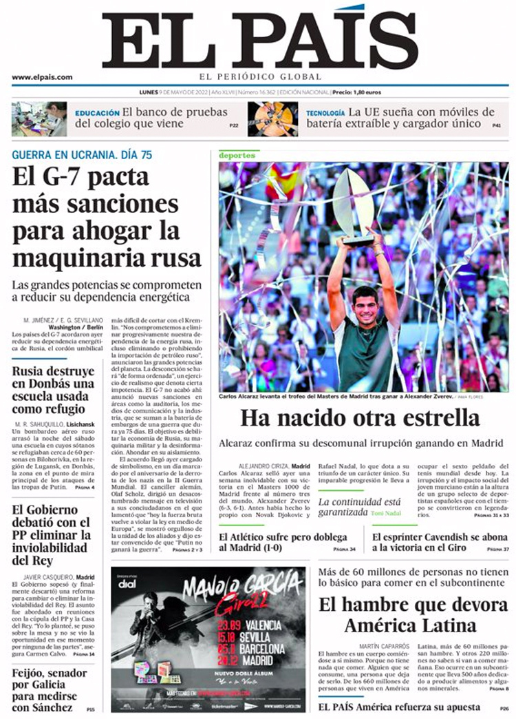 Principales portadas de hoy 9 de Mayo de 2022