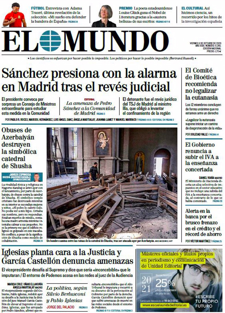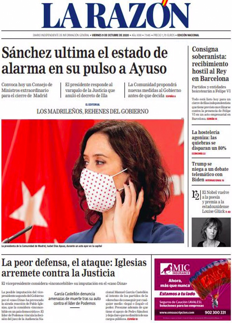 Principales portadas de hoy 9 de Octubre de 2020