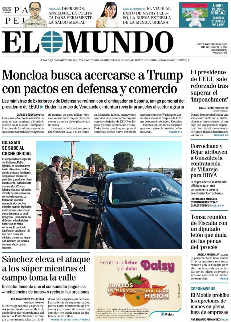 Principales portadas de hoy día 06 de Febrero de 2020