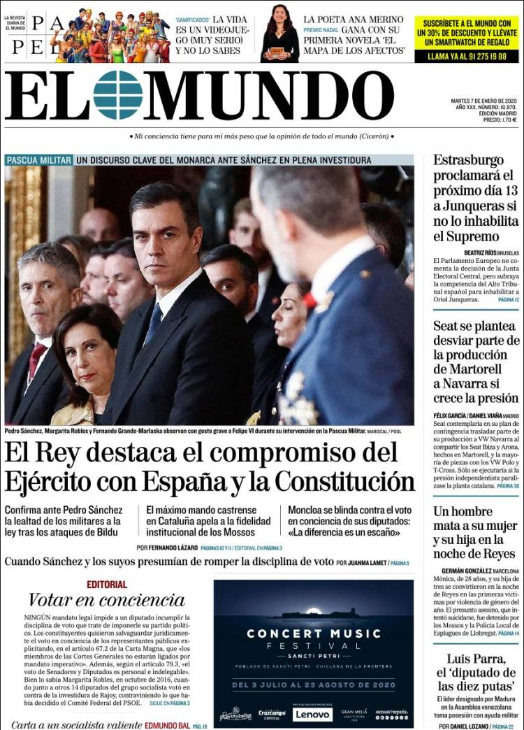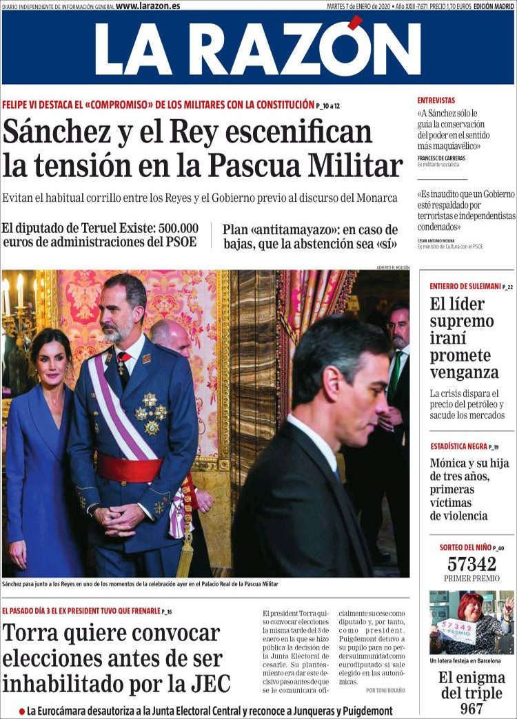 Principales portadas de hoy día 07 de Enero de 2020