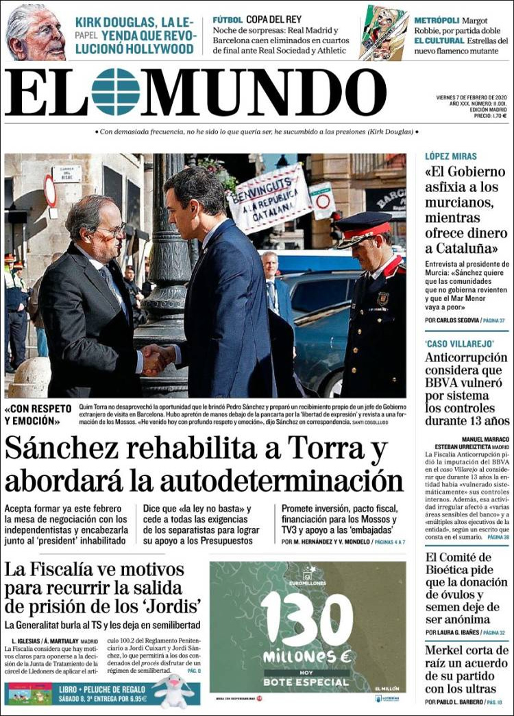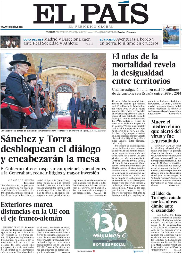 Principales portadas de hoy día 07 de Febrero de 2020
