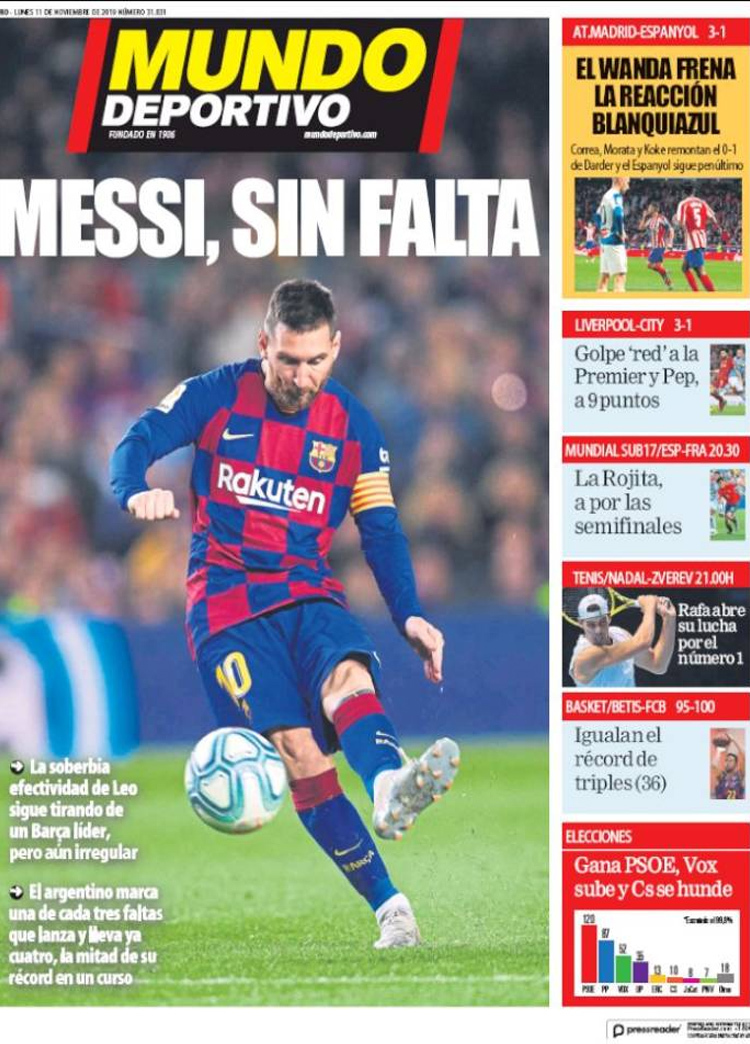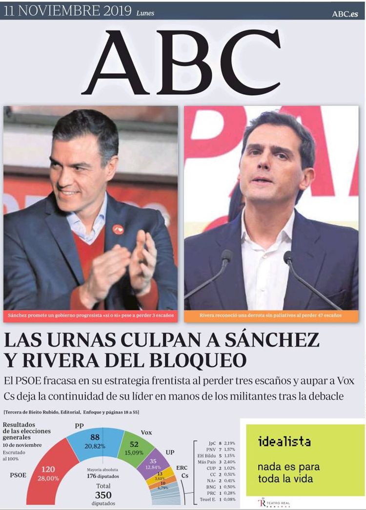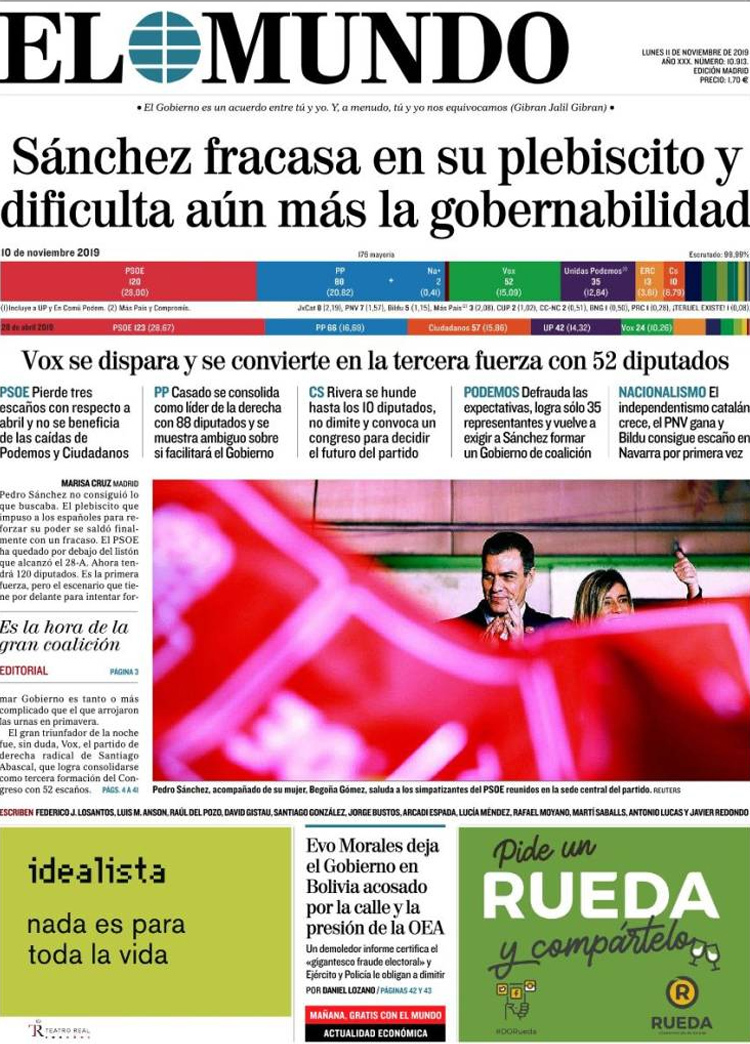 Principales portadas de hoy día 11 de Noviembre de 2019