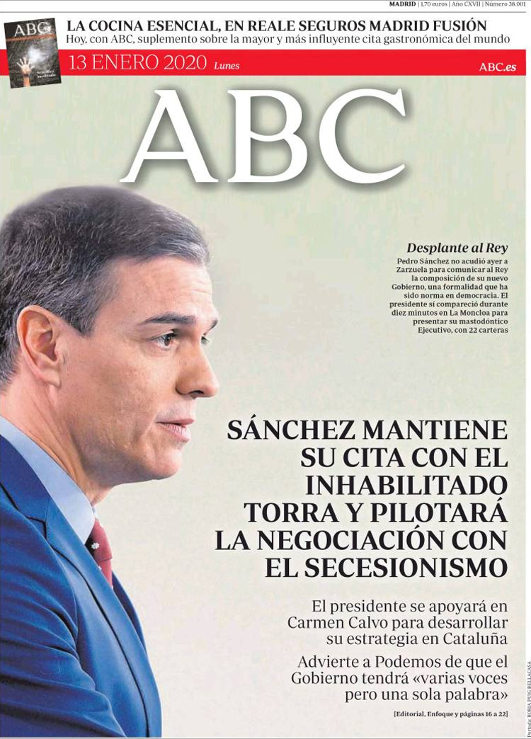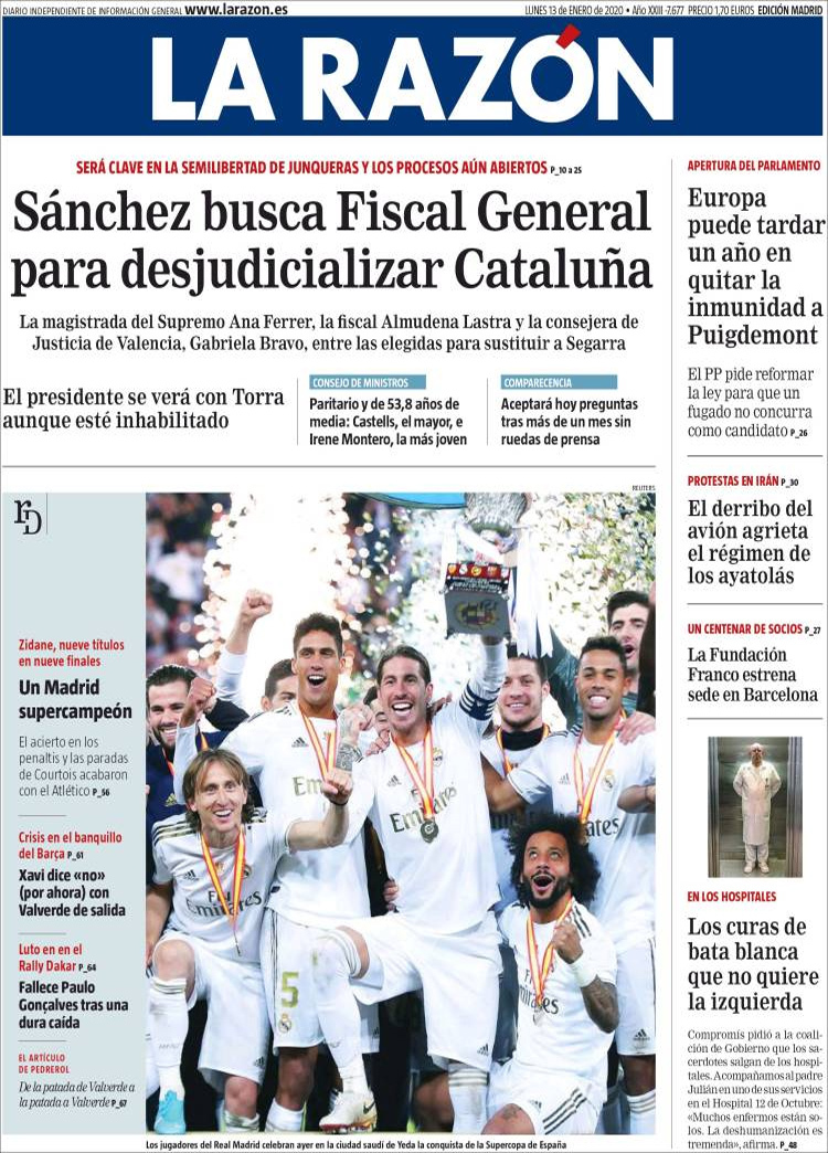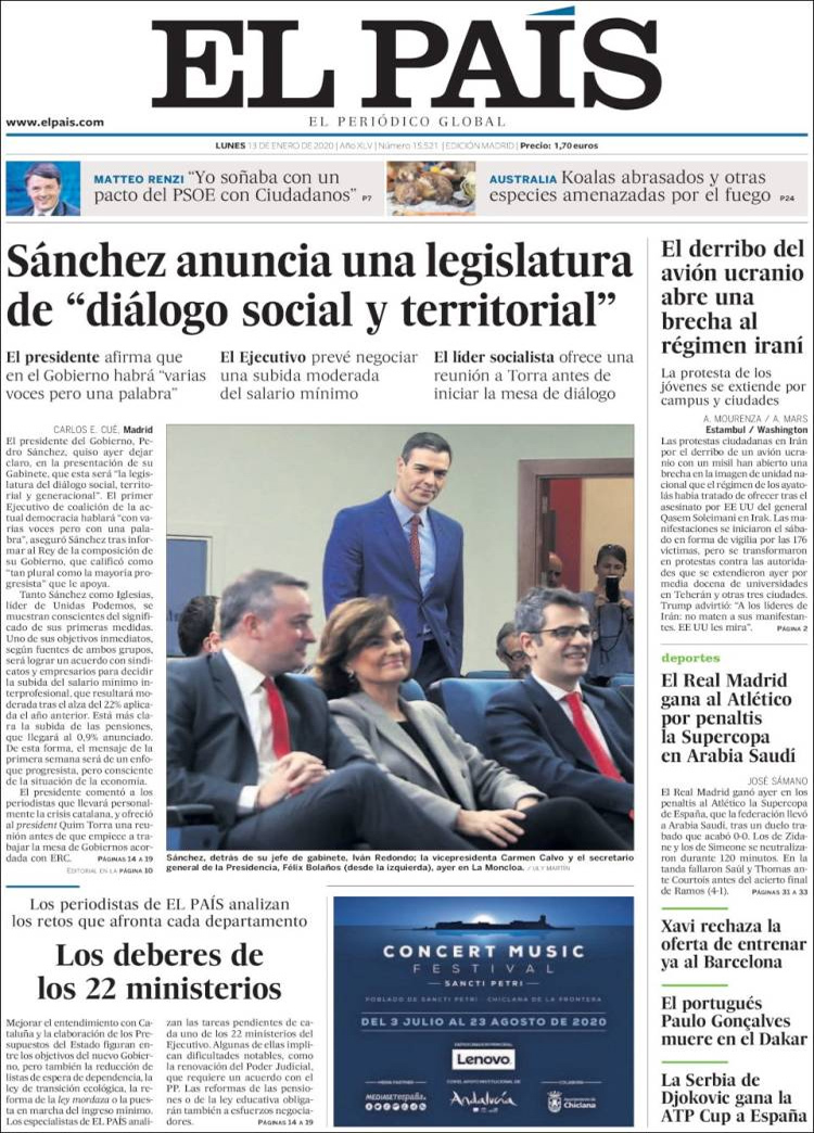 Principales portadas de hoy día 13 de Enero de 2020