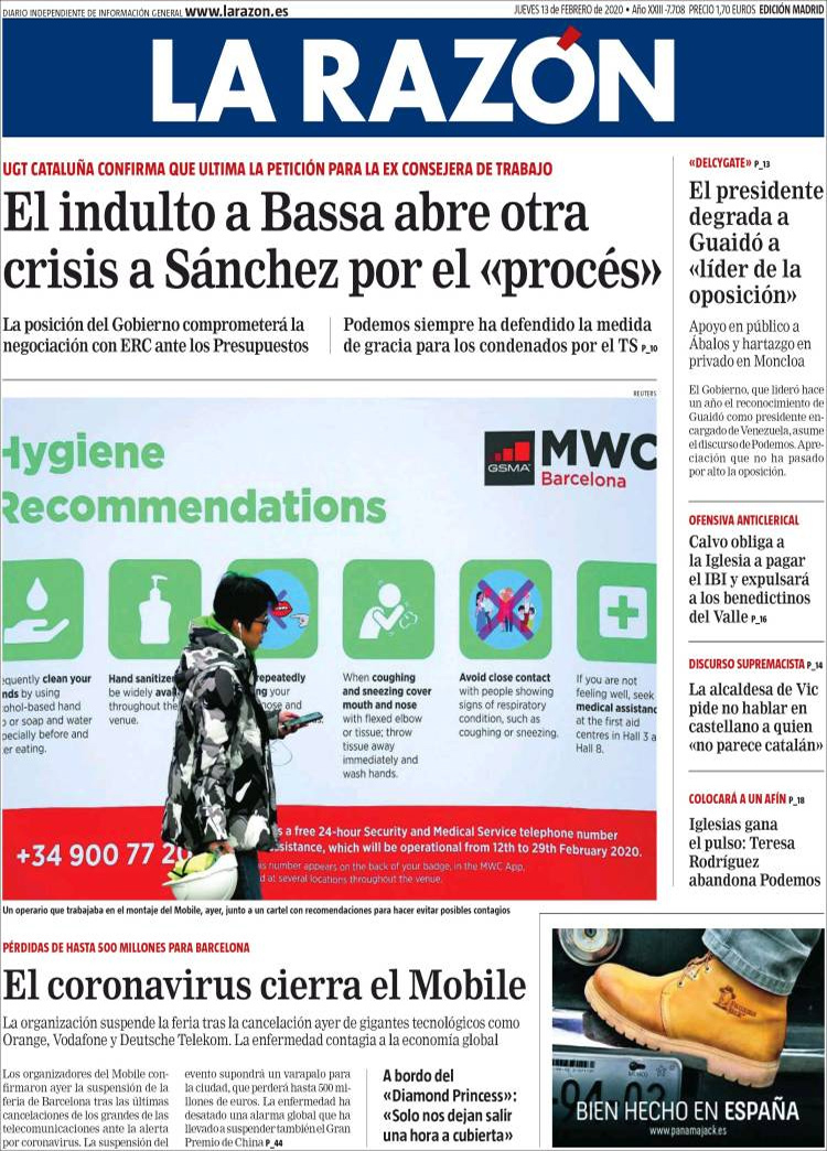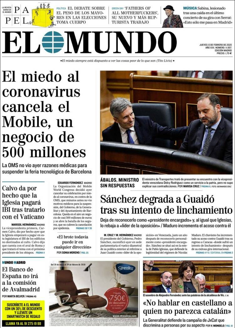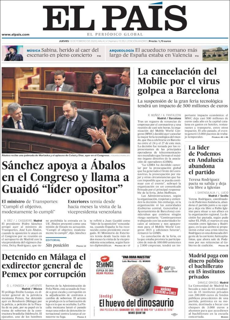 Principales portadas de hoy día 13 de Febrero de 2020