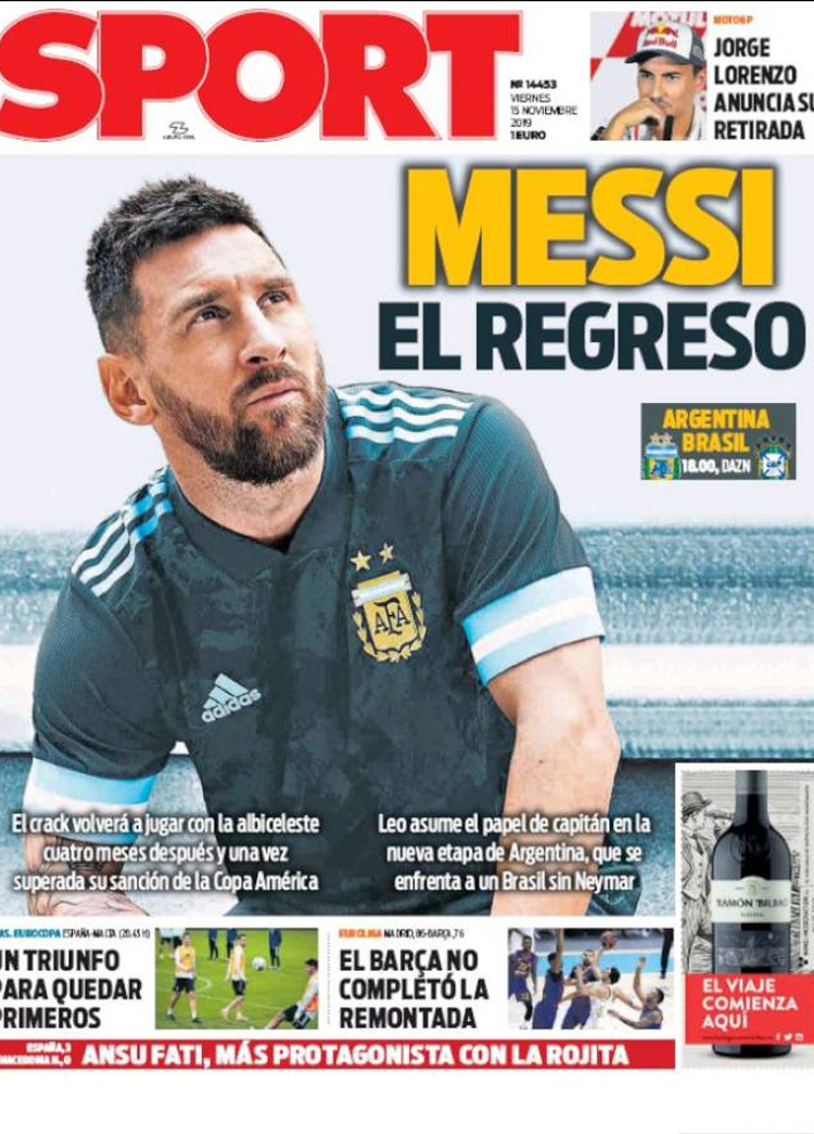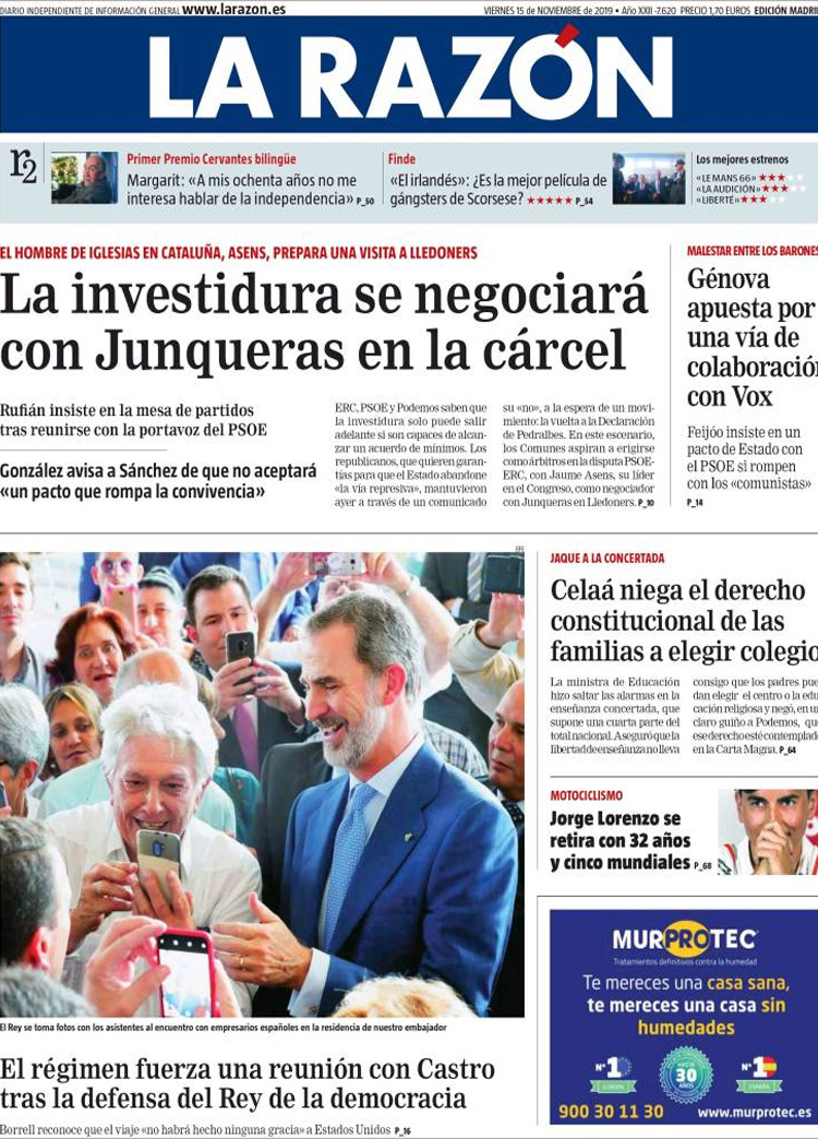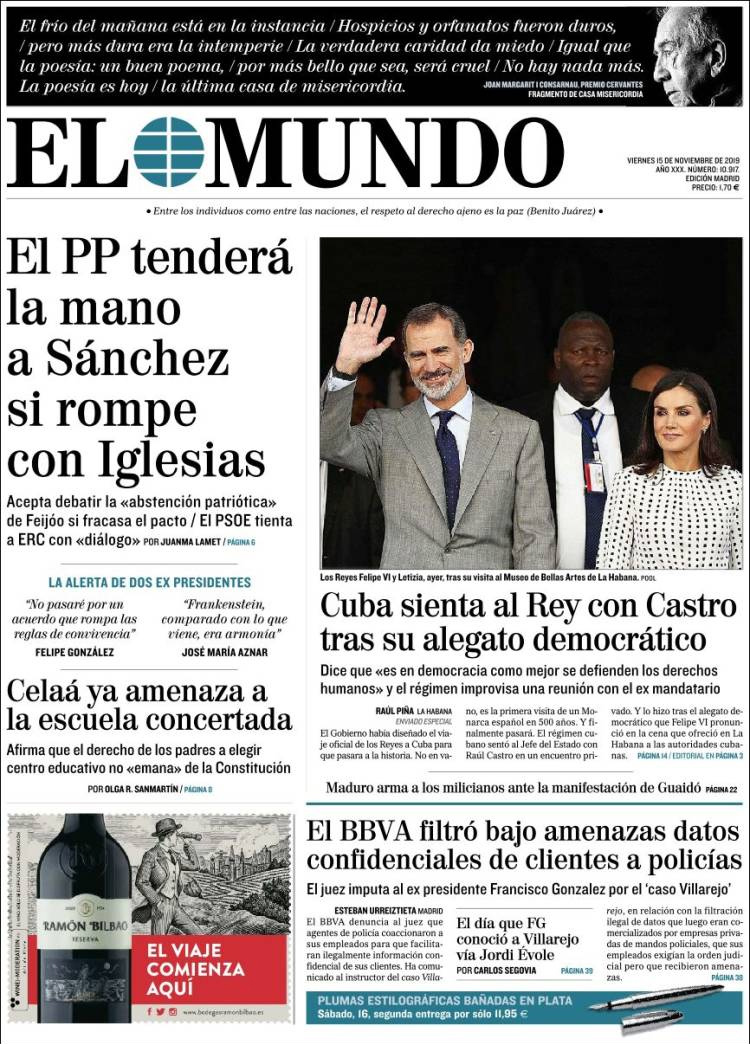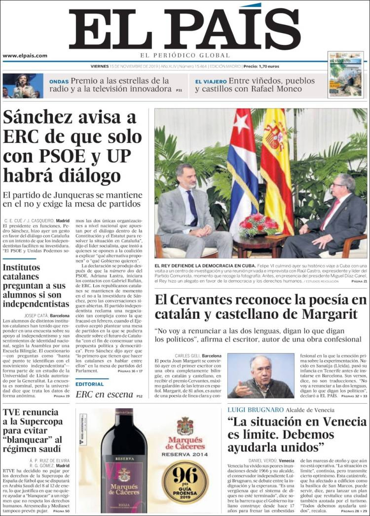 Principales portadas de hoy día 15 de Noviembre de 2019