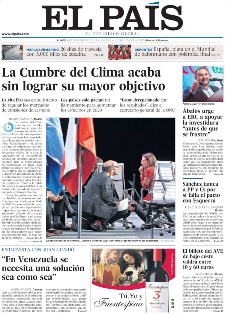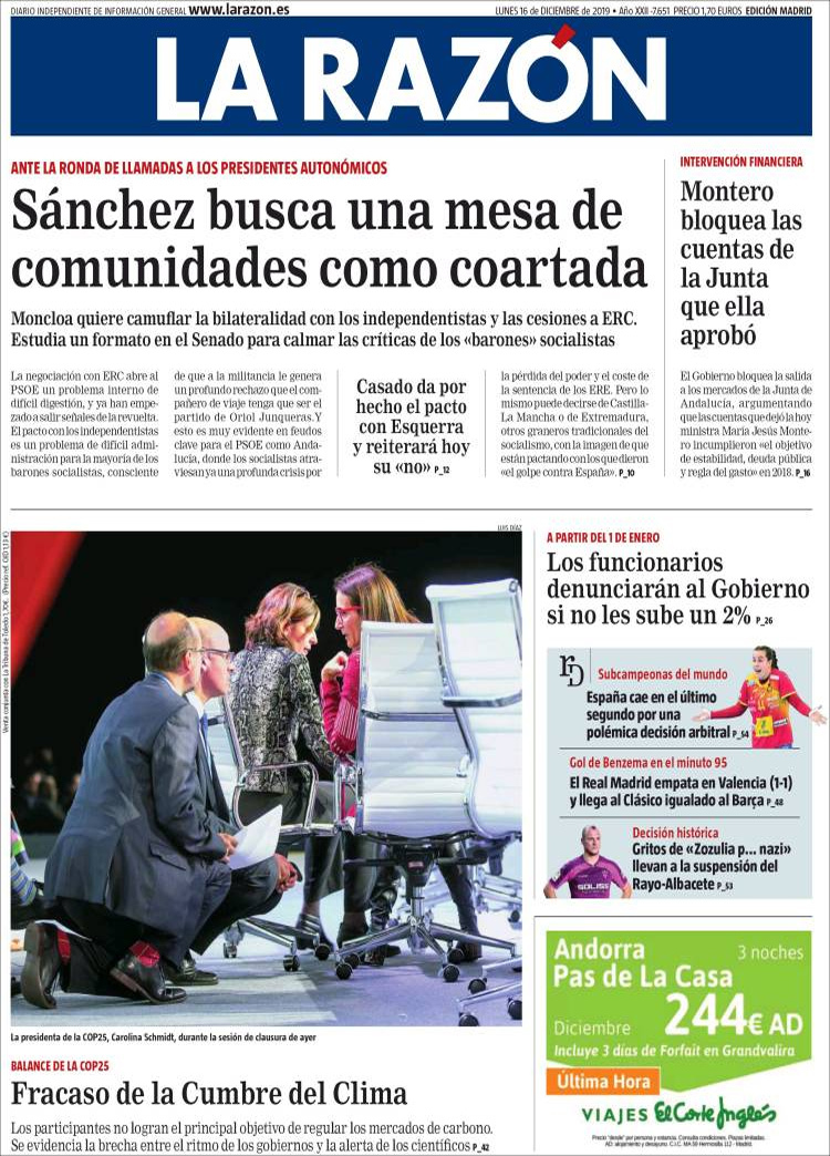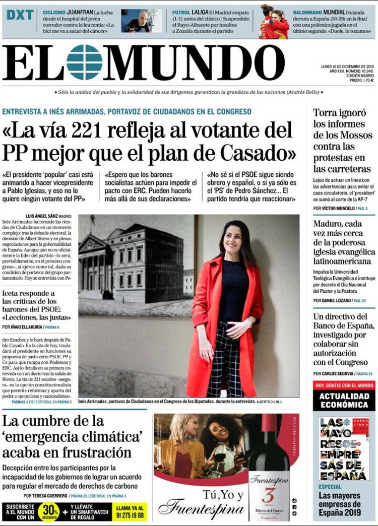 Principales portadas de hoy día 16 de Diciembre de 2019