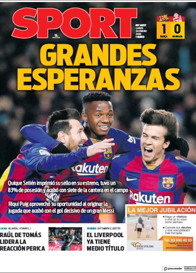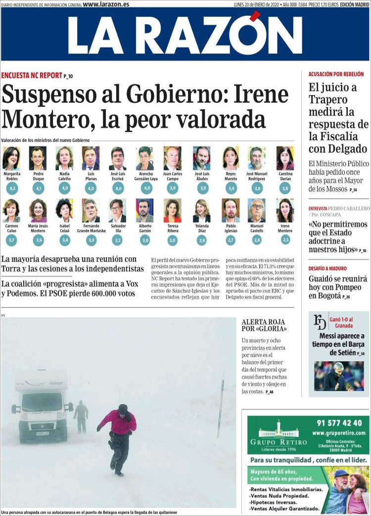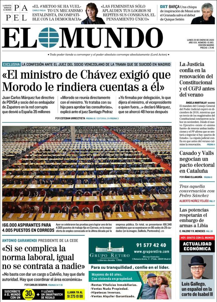 Principales portadas de hoy día 20 de Enero de 2020