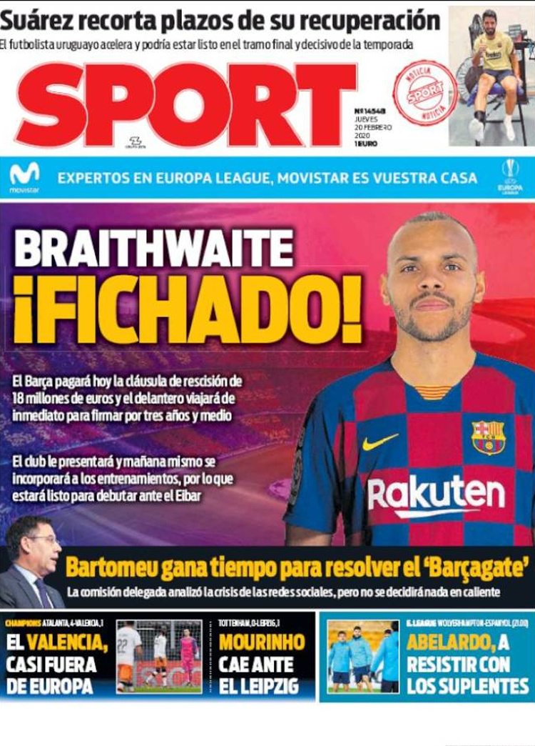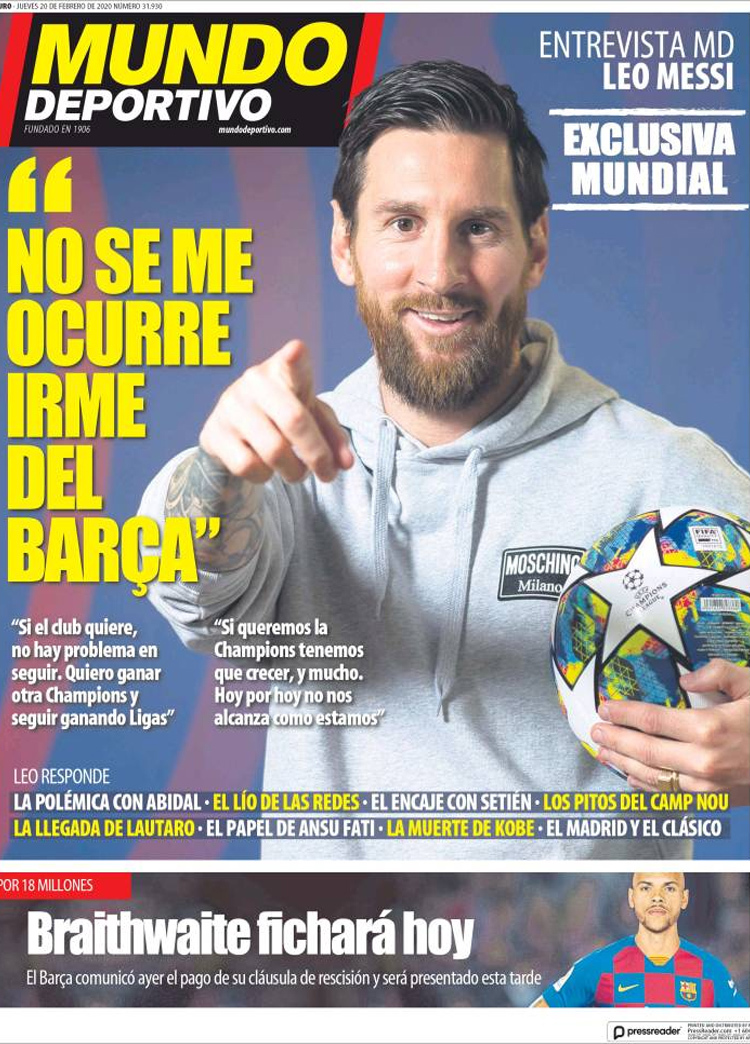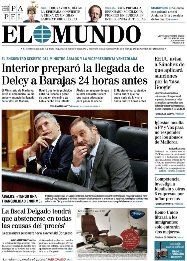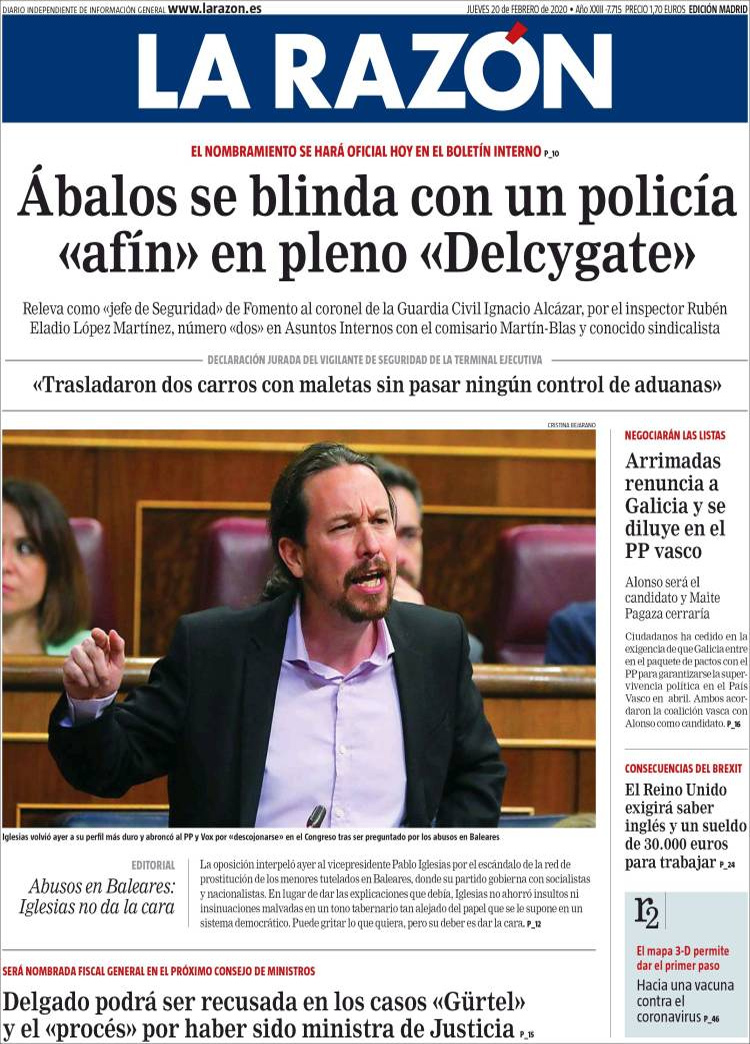 Principales portadas de hoy día 20 de Febrero de 2020