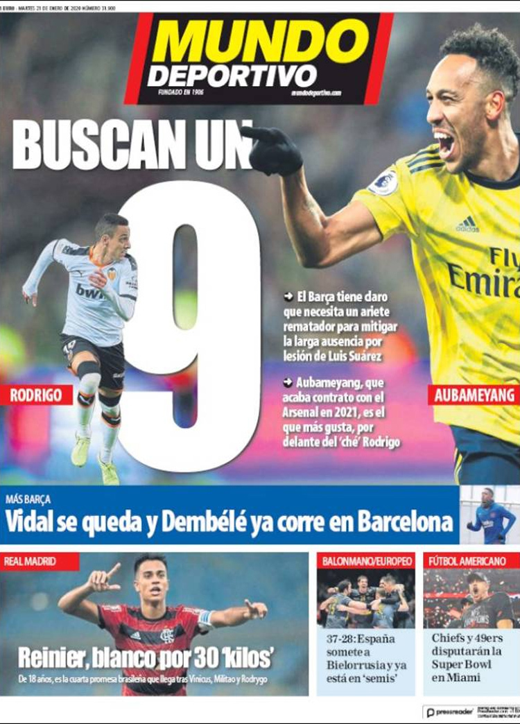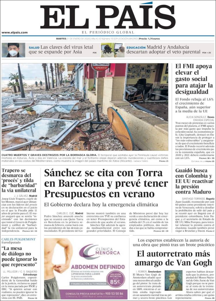 Principales portadas de hoy día 21 de Enero de 2020