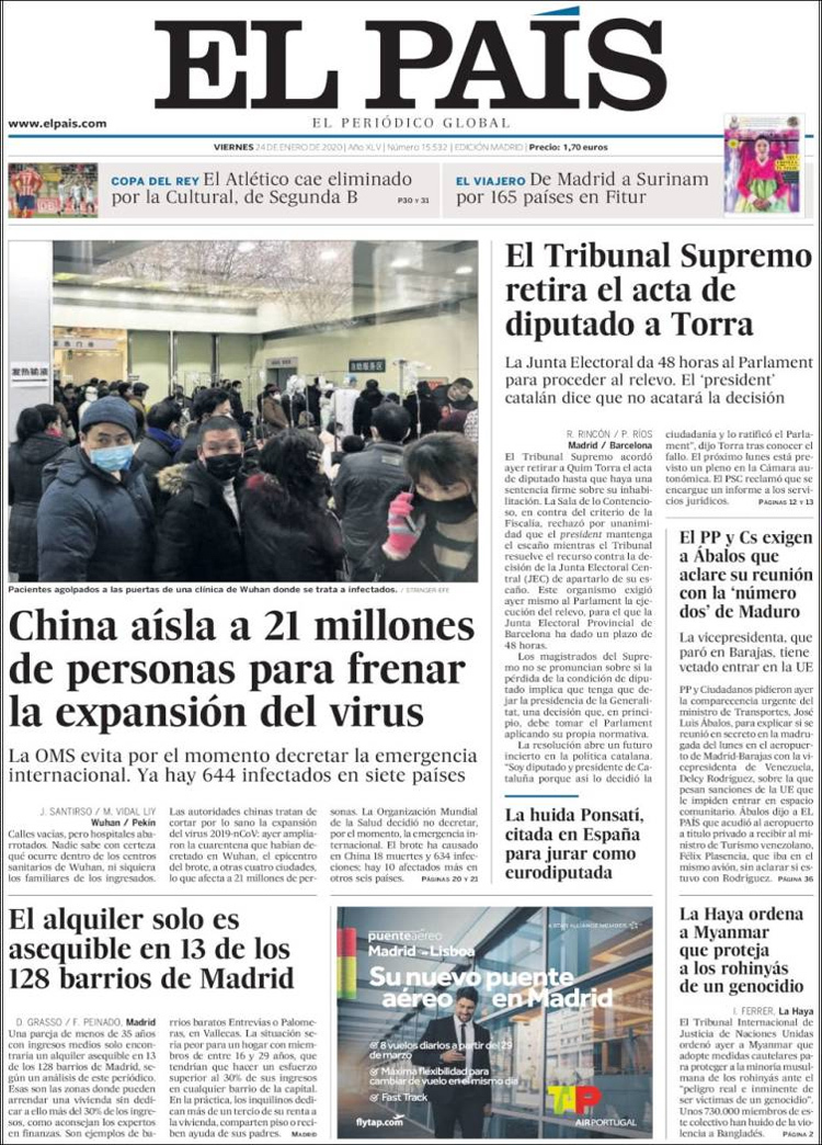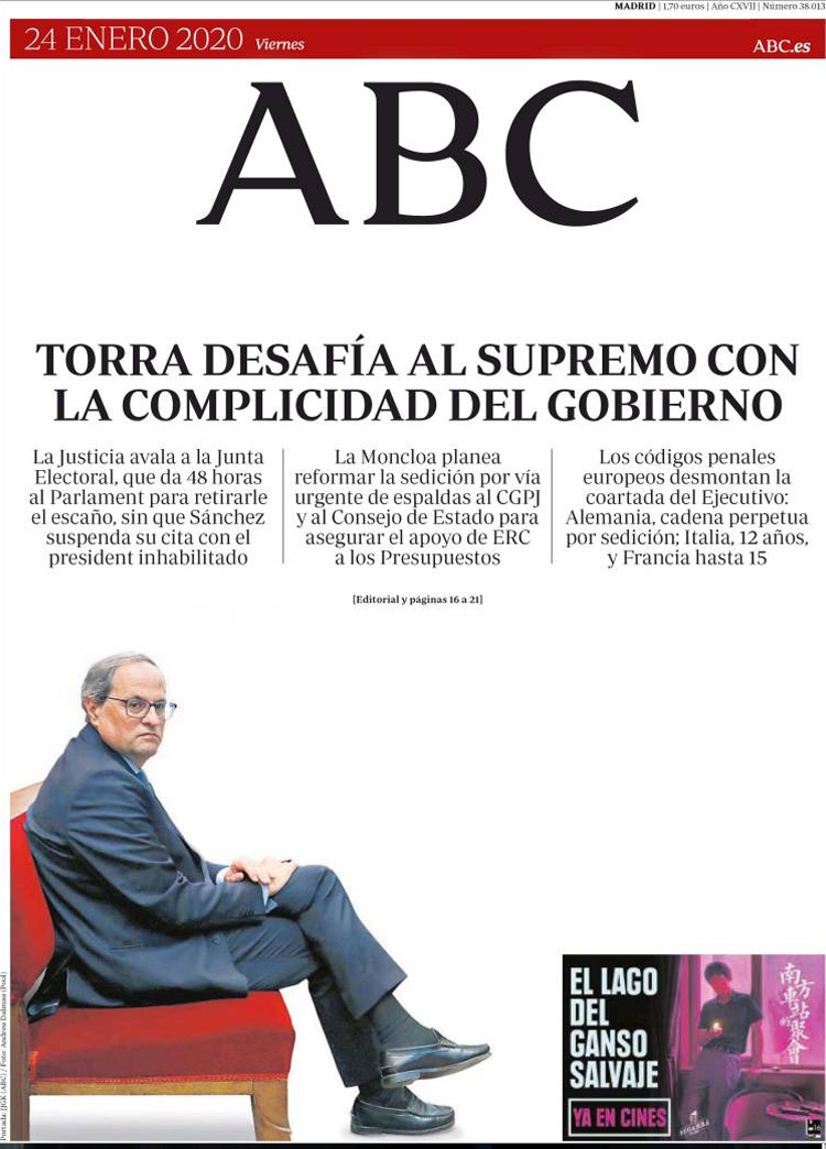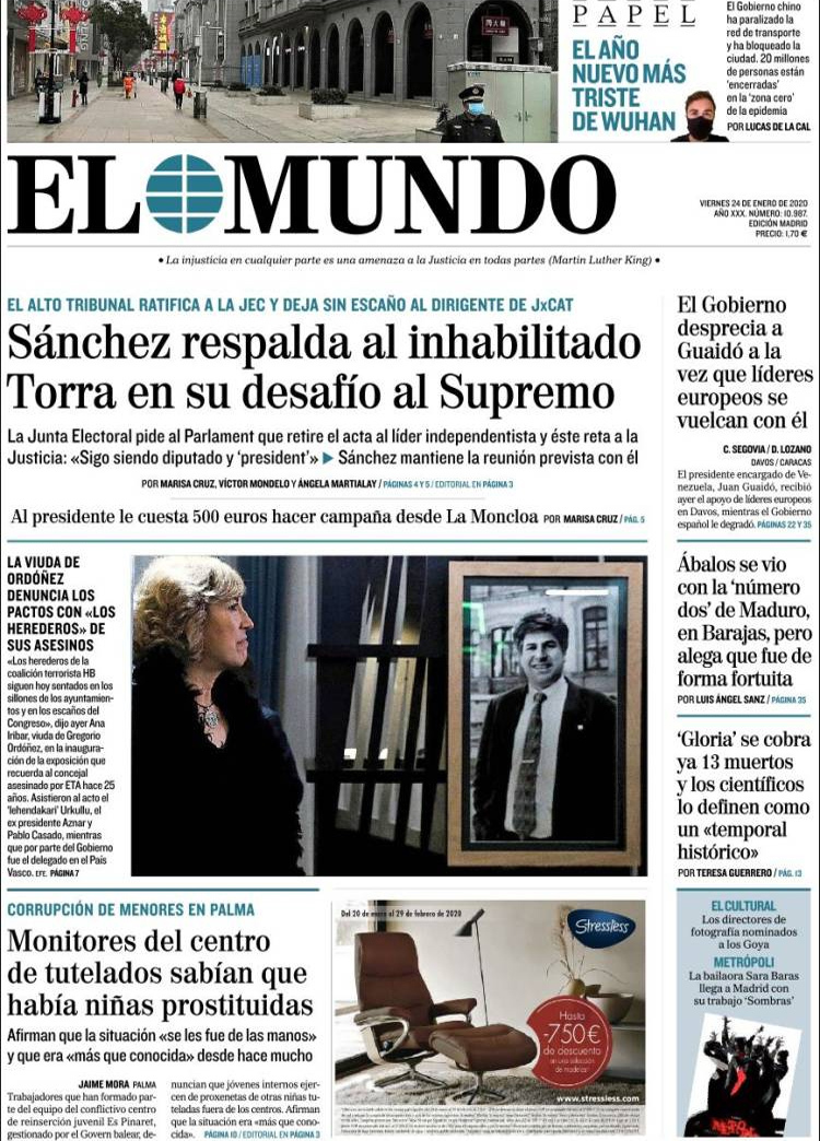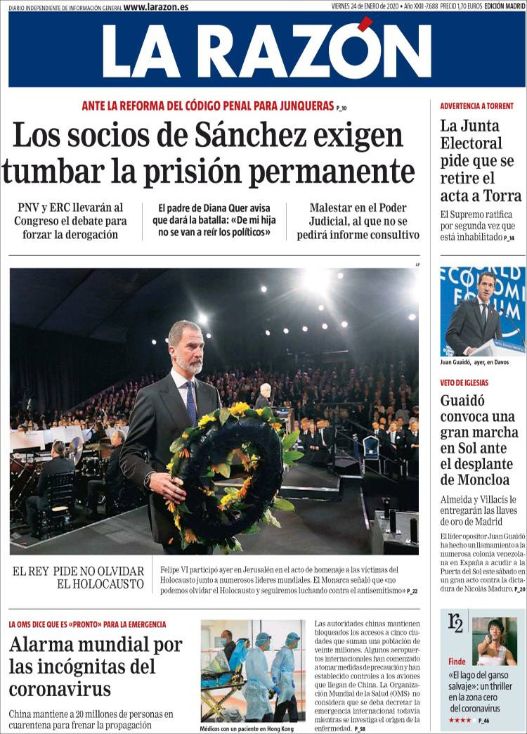 Principales portadas de hoy día 24 de Enero de 2020
