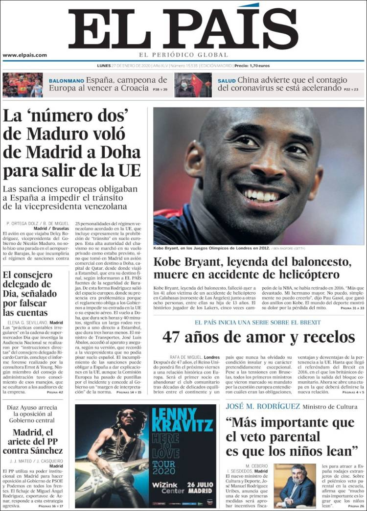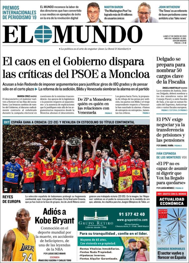 Principales portadas de hoy día 27 de Enero de 2020