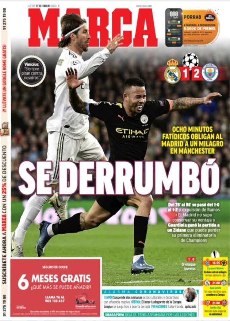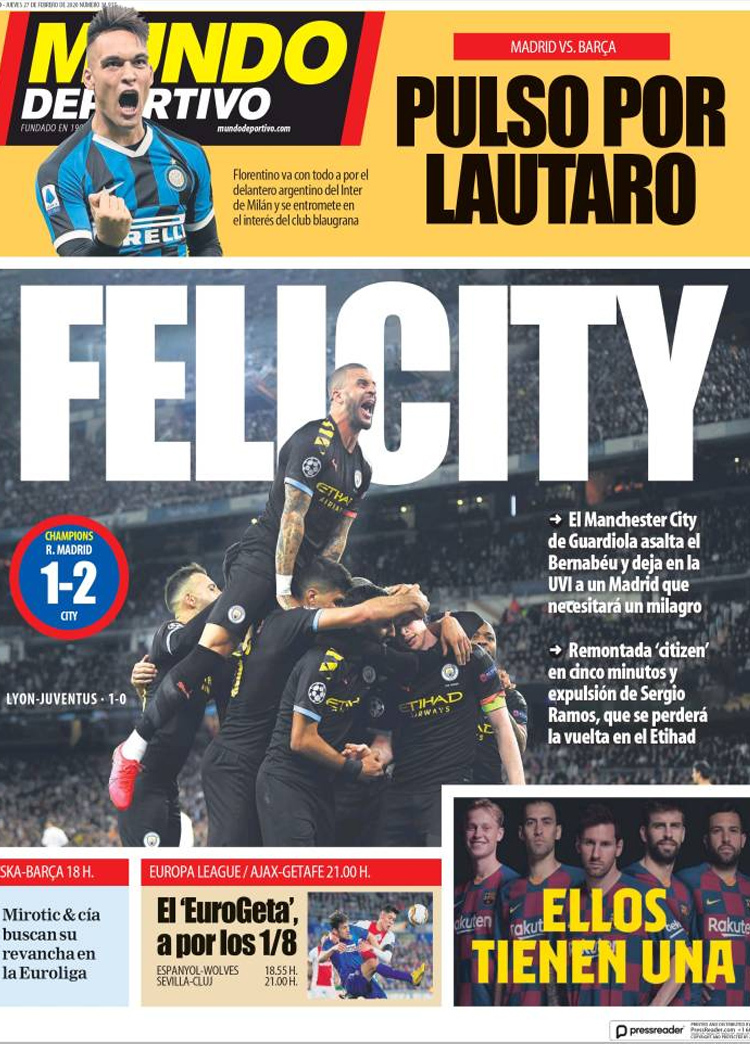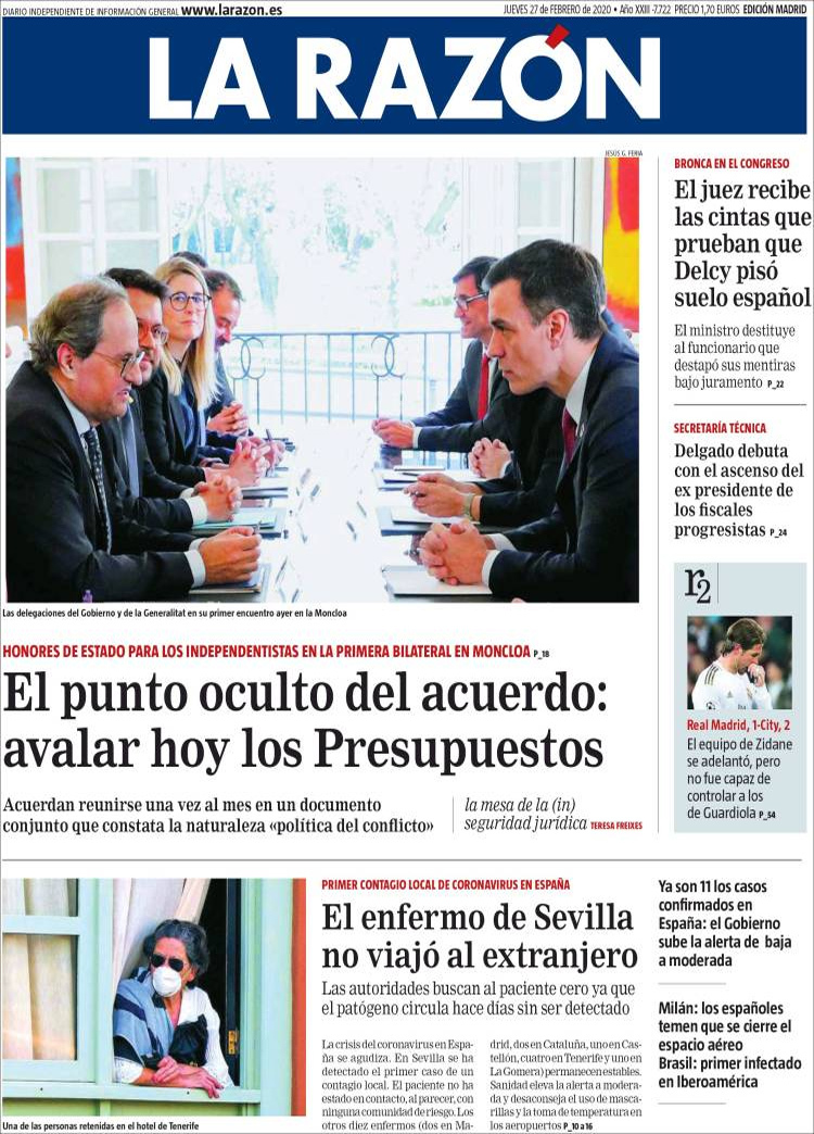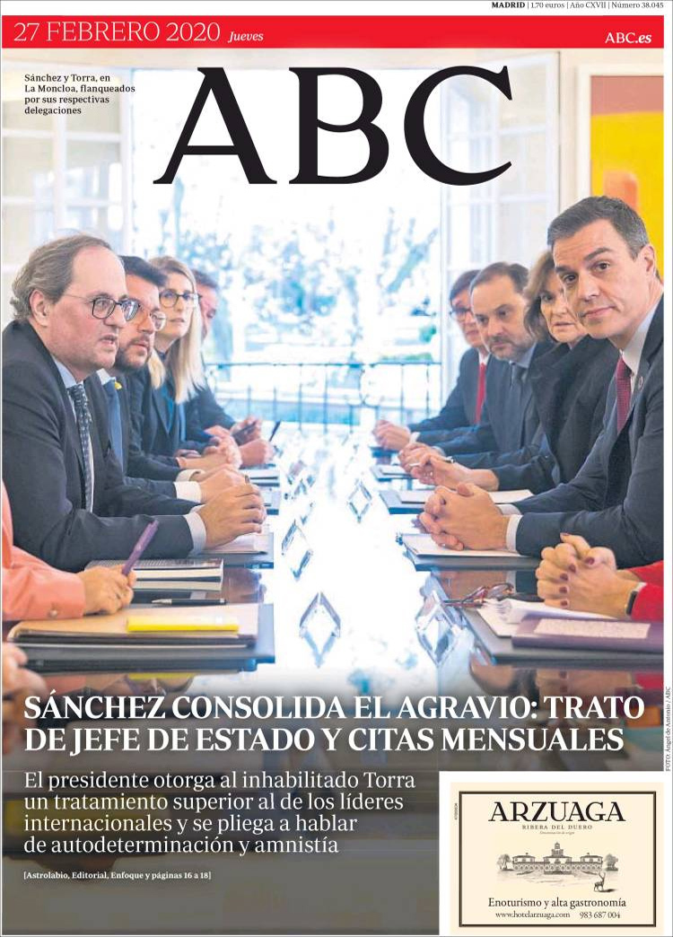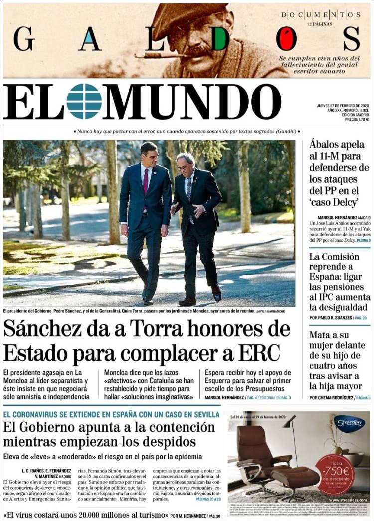 Principales portadas de hoy día 27 de Febrero de 2020