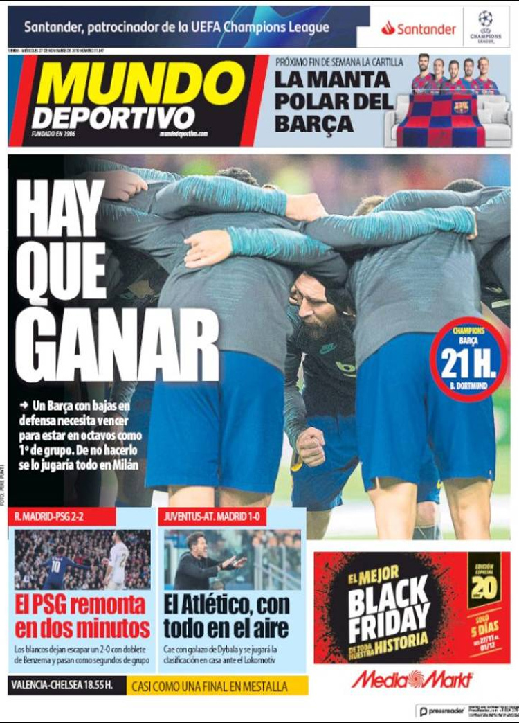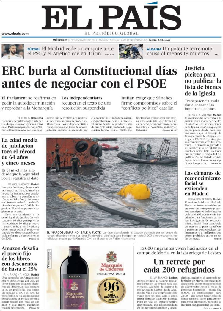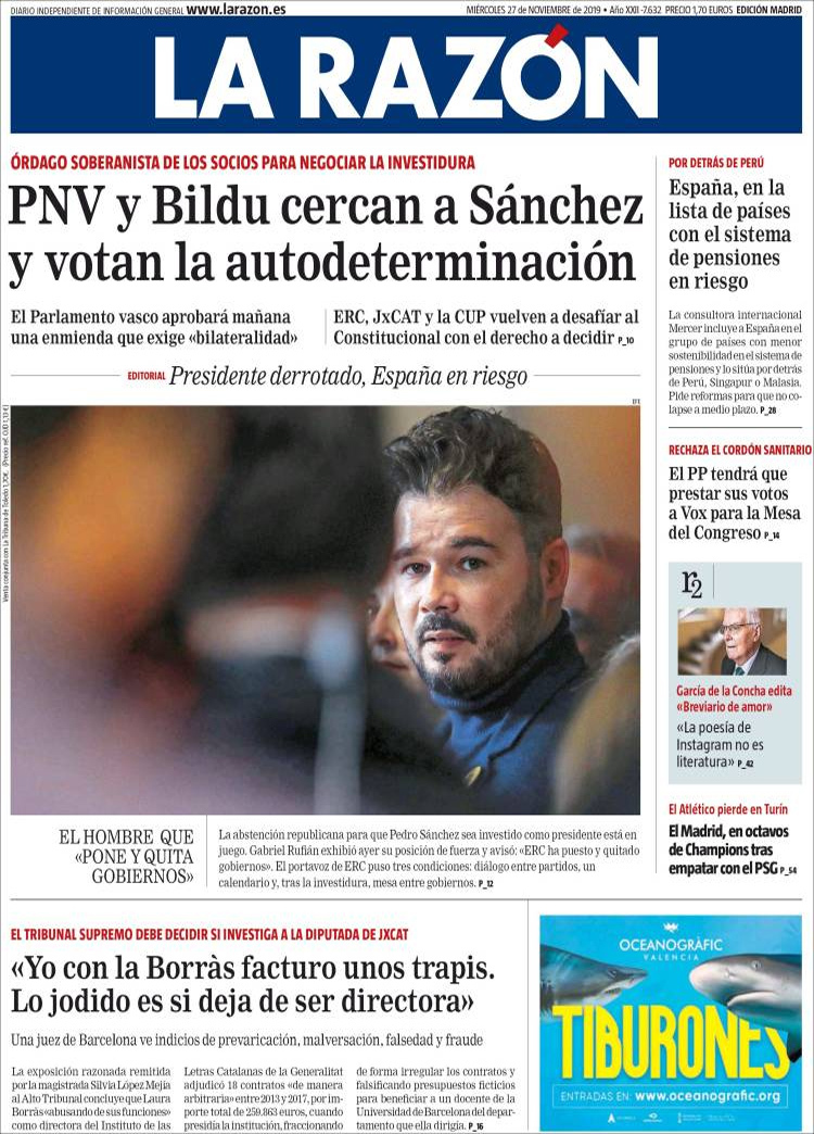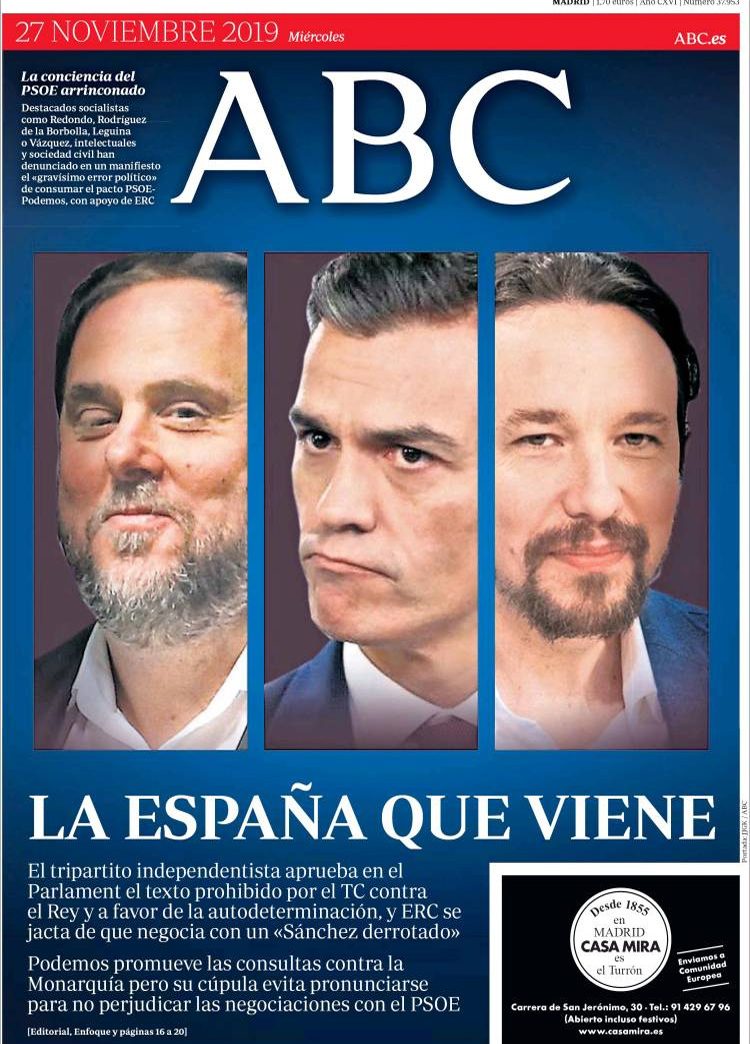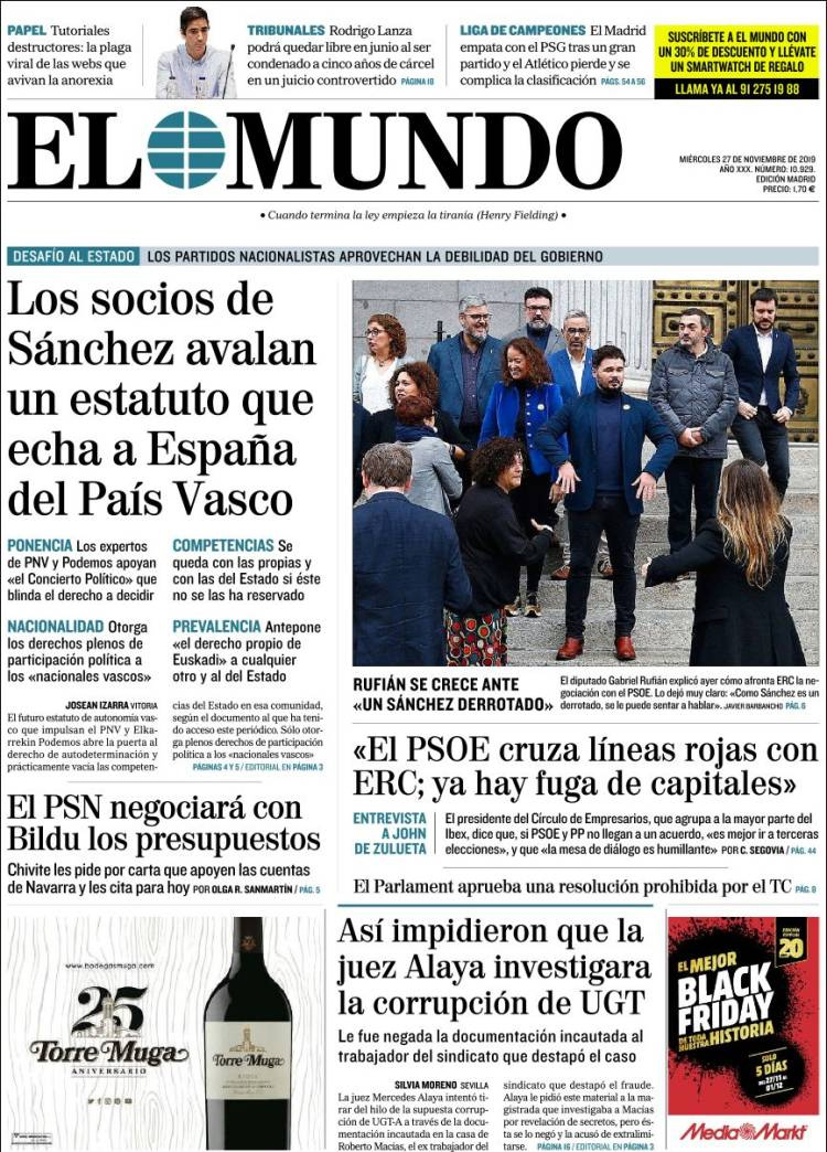Principales portadas de hoy día 27 de Noviembre de 2019