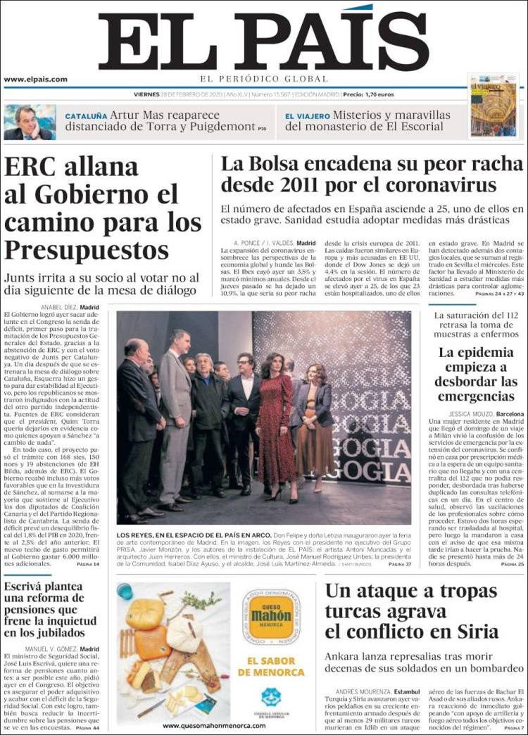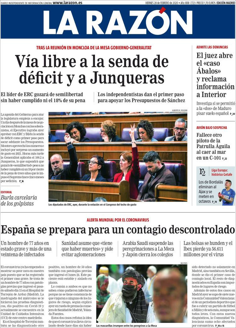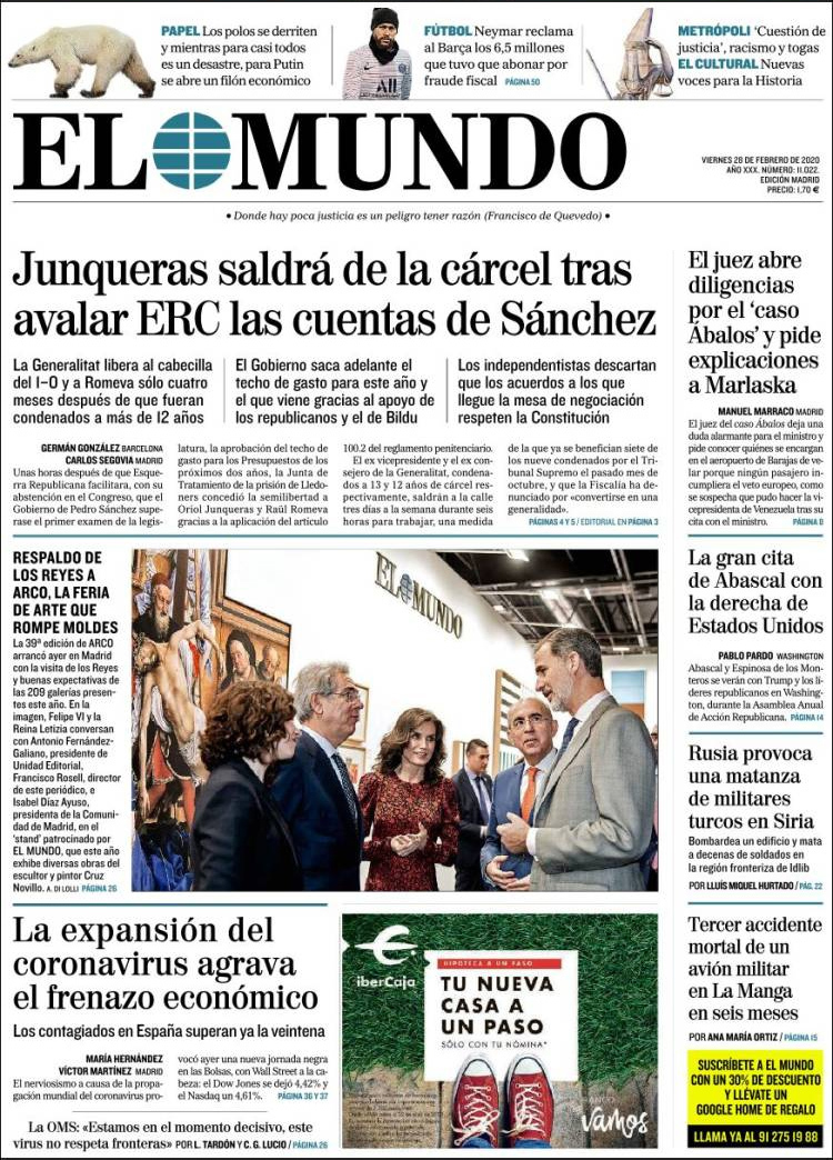 Principales portadas de hoy día 28 de Febrero de 2020