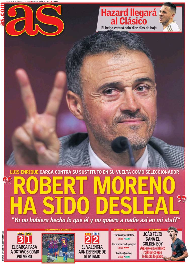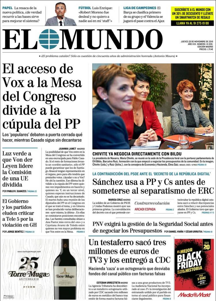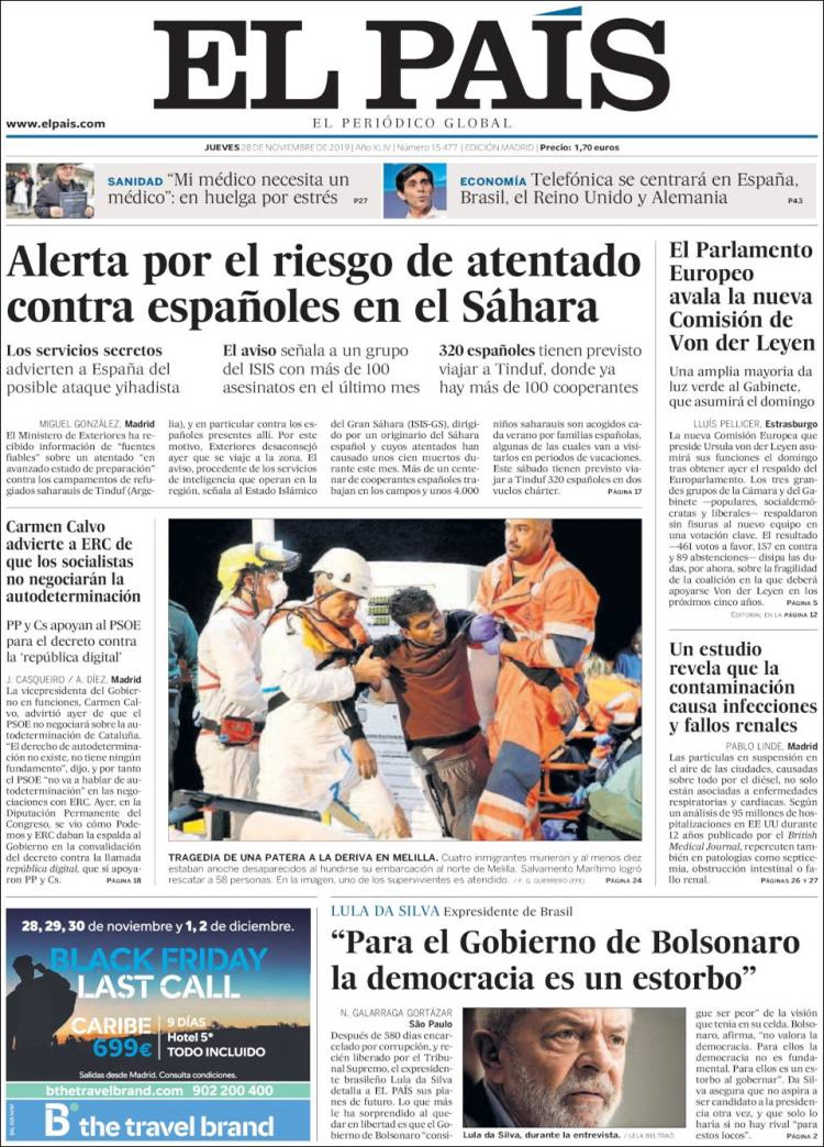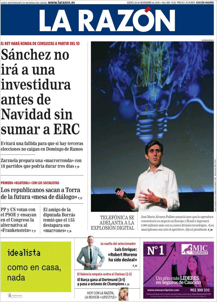 Principales portadas de hoy día 28 de Noviembre de 2019