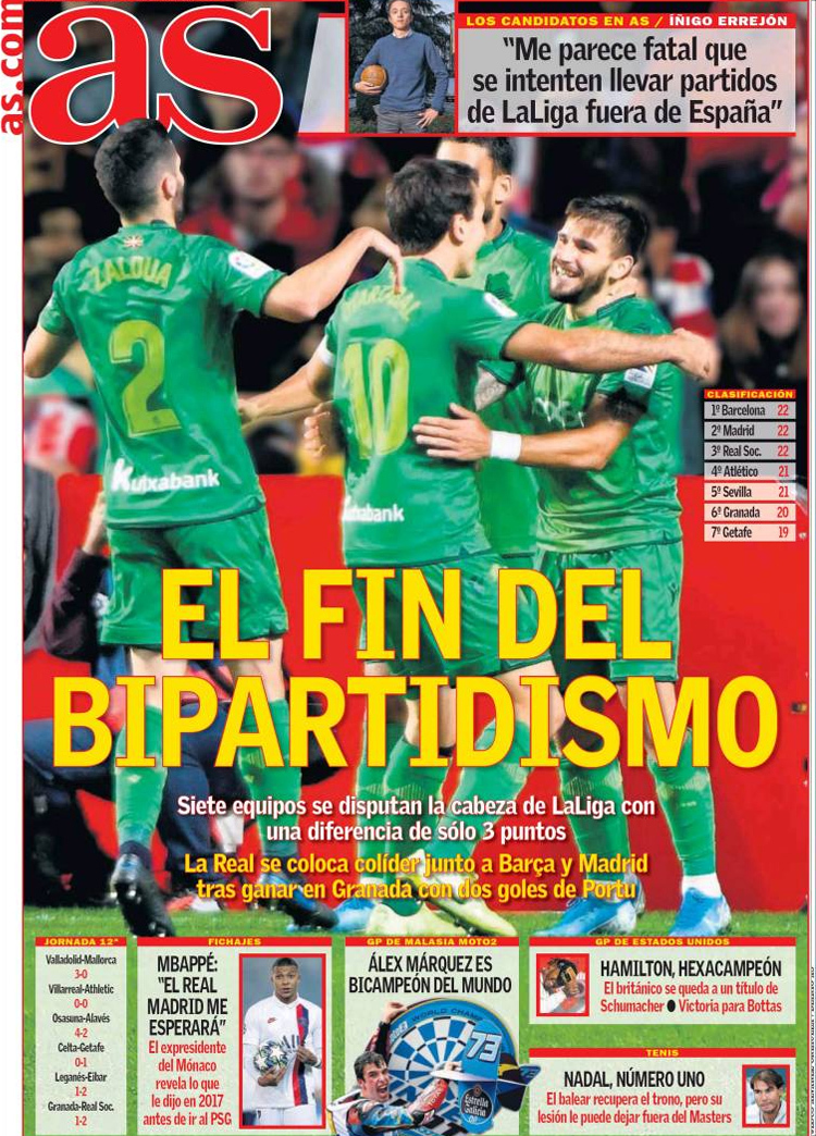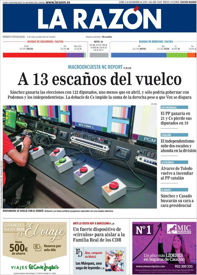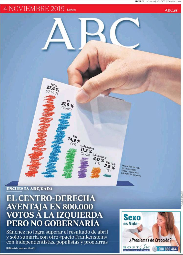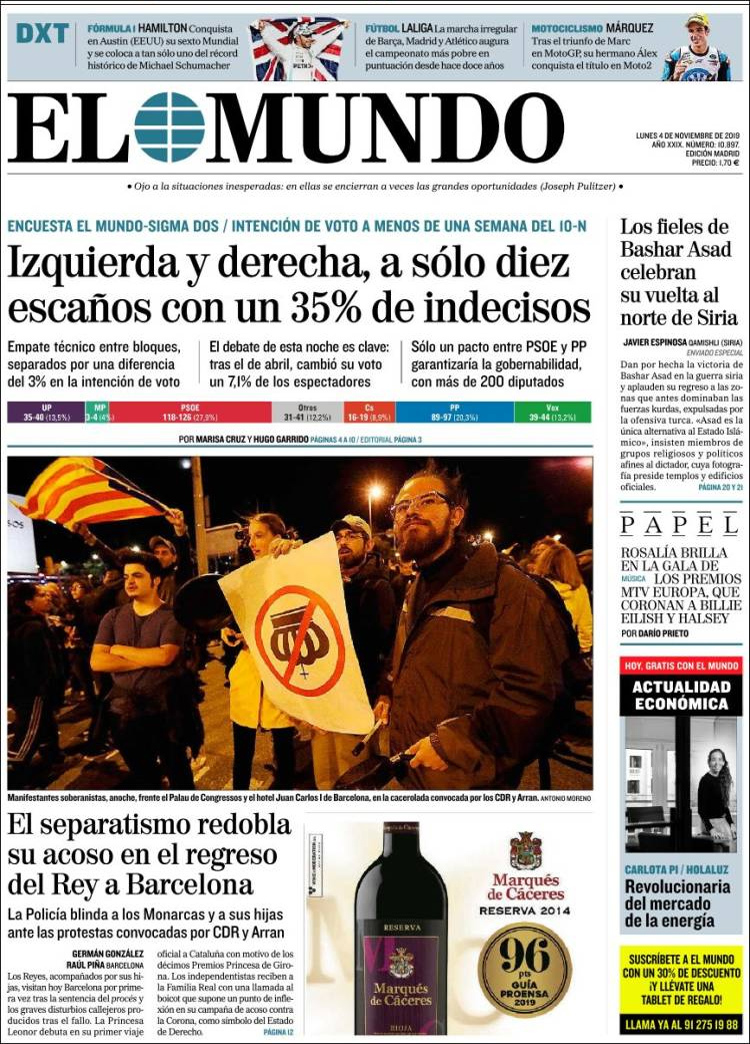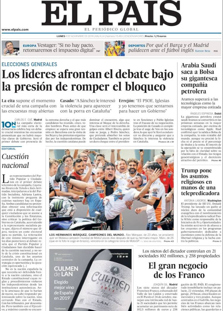 Principales portadas de hoy día 4 de Noviembre de 2019