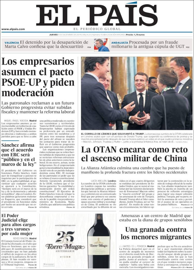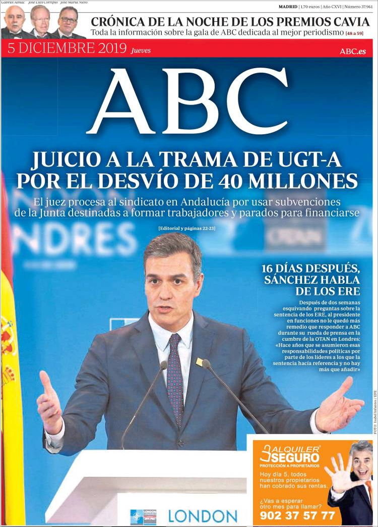 Principales portadas de hoy día 5 de Diciembre de 2019