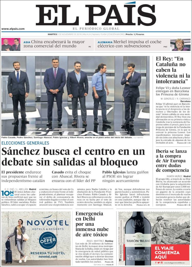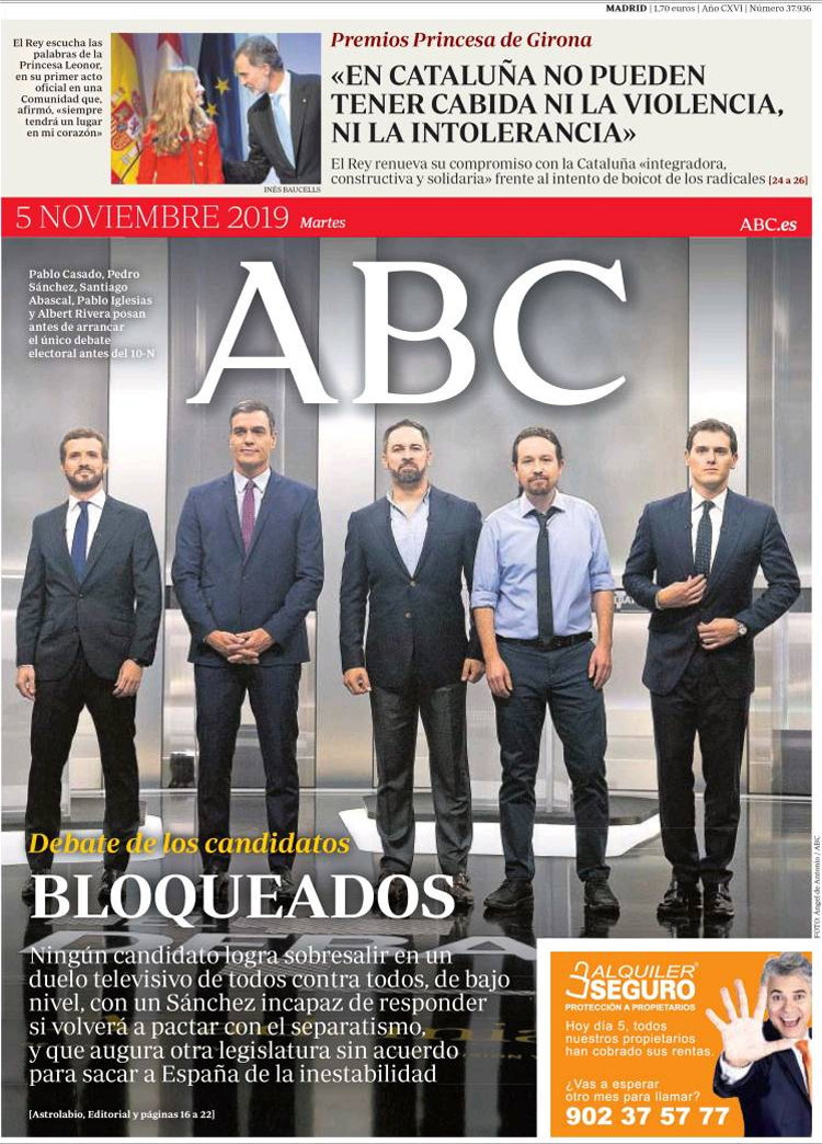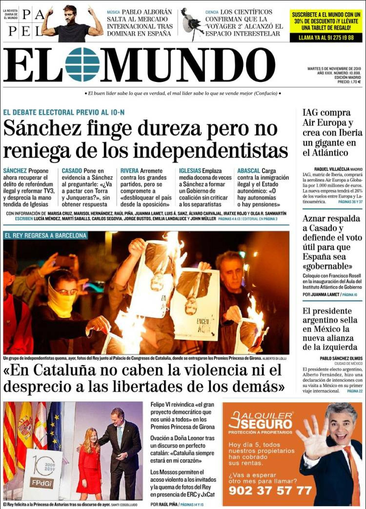Principales portadas de hoy día 5 de Noviembre de 2019