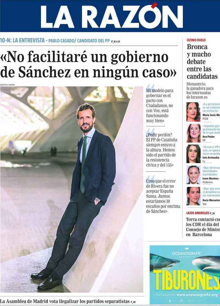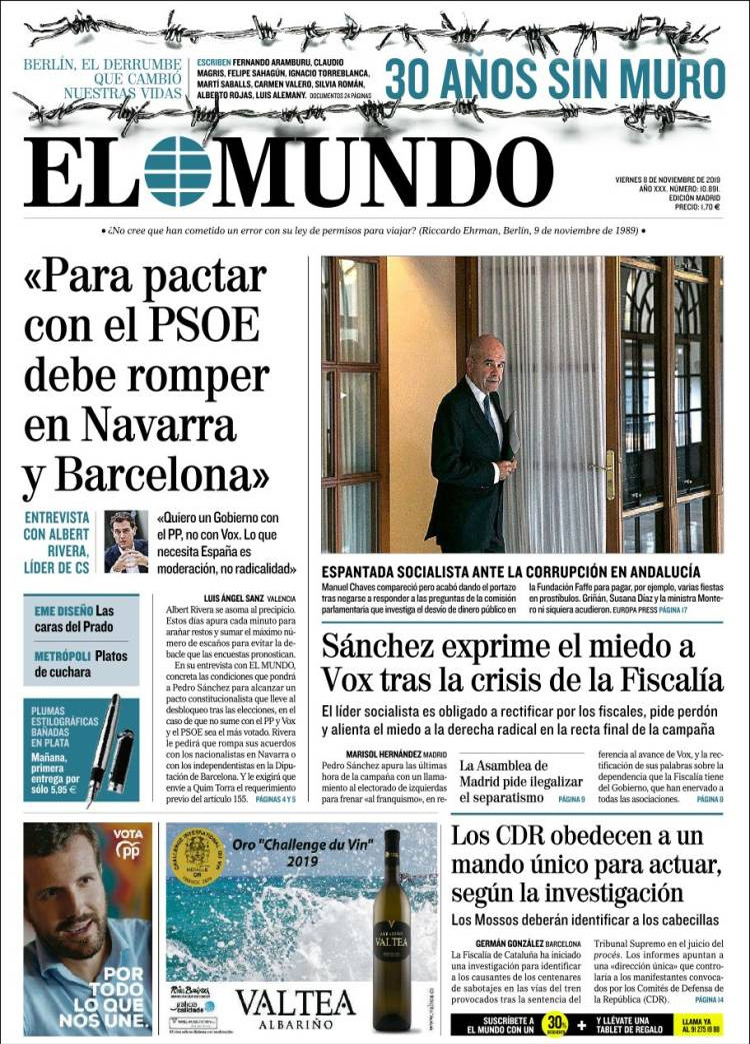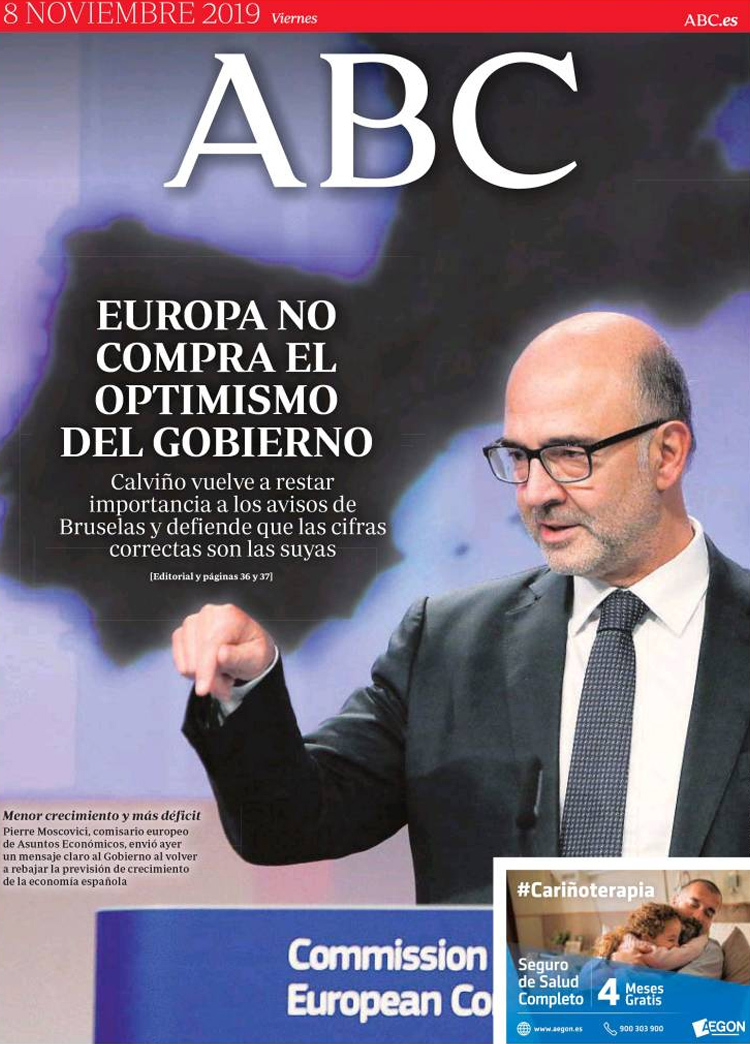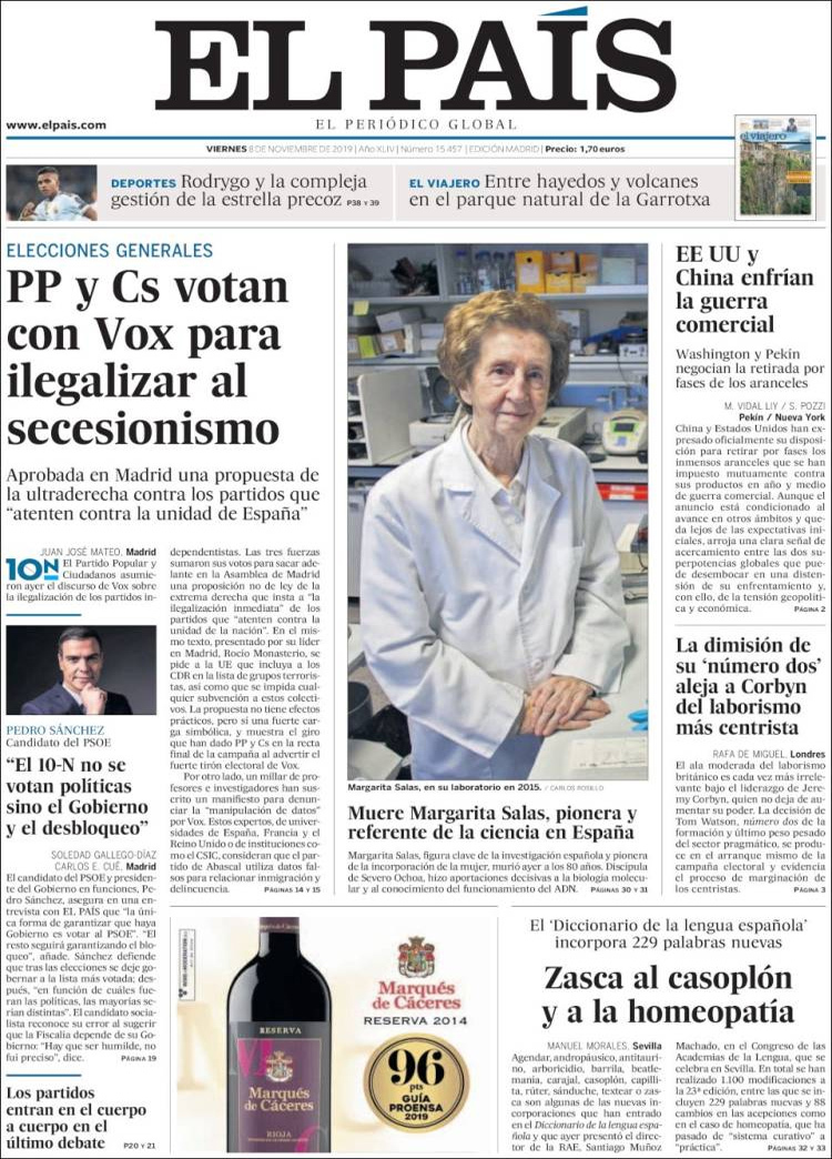 Principales portadas de hoy día 8 de Noviembre de 2019