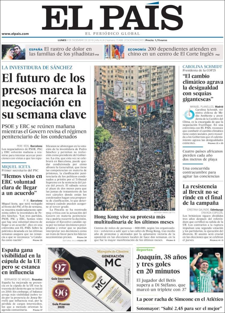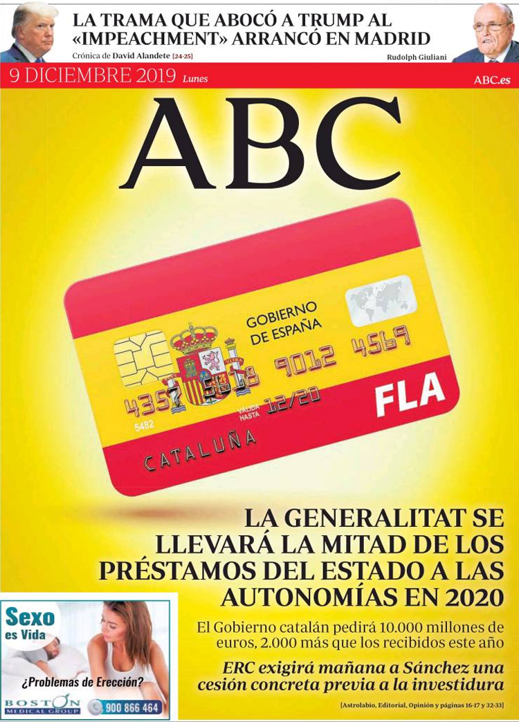 Principales portadas de hoy día 9 de Diciembre de 2019