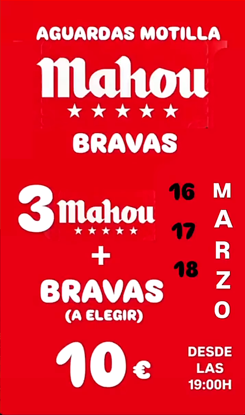 Desde el 16 y hasta hoy, 18 de marzo, Aguardas ha puesto en marcha una promoción pensada para disfrutar sin complicaciones: tres cervezas de la familia Mahou, a elegir, acompañadas de una ración de patatas bravas, con precios desde 10 euros.