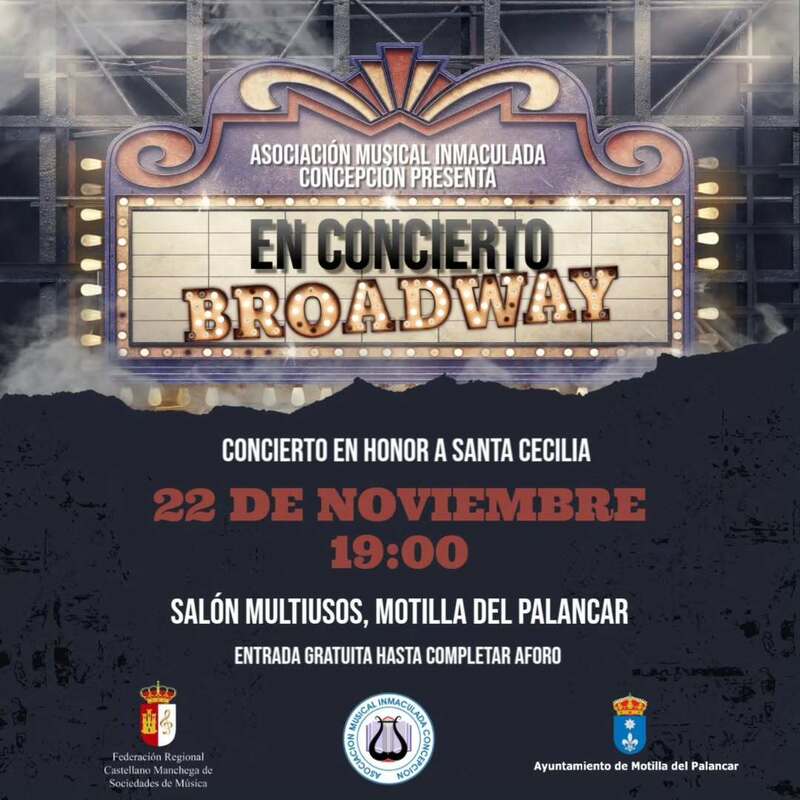 Motilla del Palancar celebrará el Día de Santa Cecilia con un concierto temático dedicado a los musicales de Broadway. La Asociación Musical Inmaculada Concepción ha organizado Broadway en concierto, una selección de piezas icónicas que se interpretará el sábado 22 de noviembre a las 19:00 horas en el Salón Multiusos, con entrada gratuita hasta completar aforo.