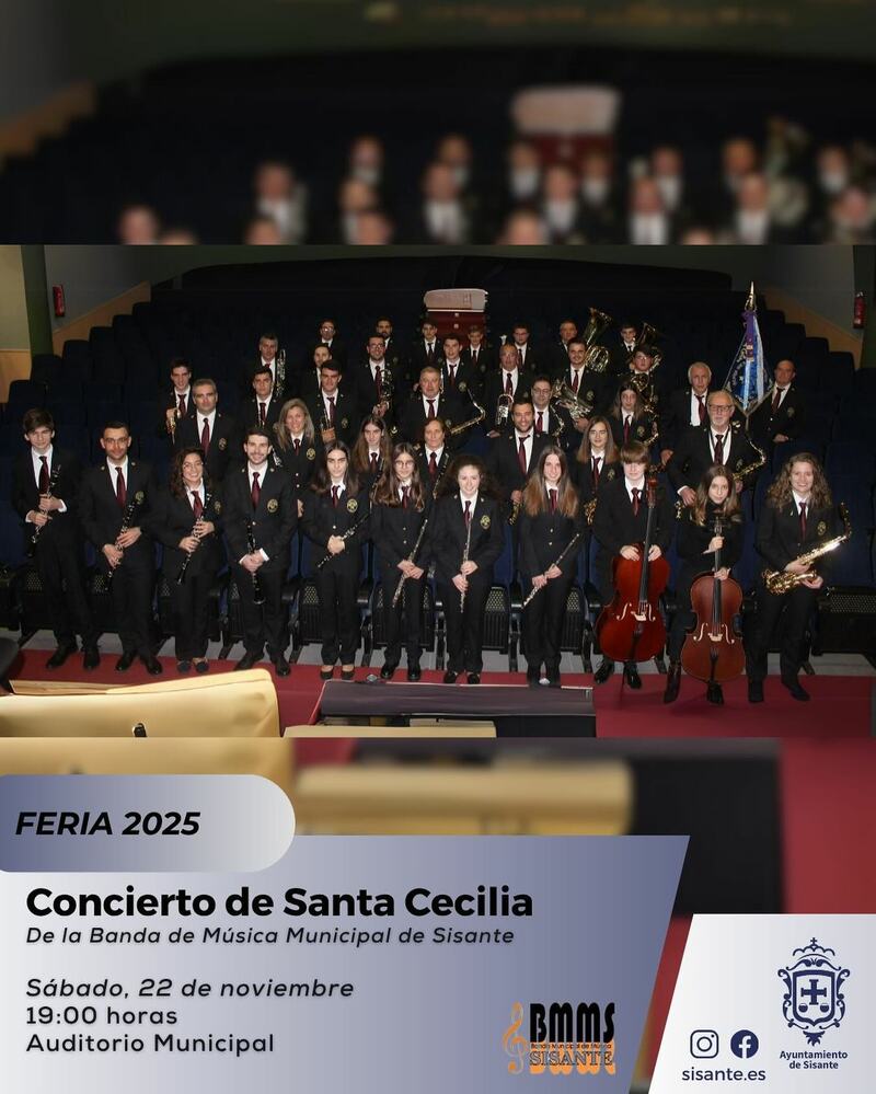 El Auditorio Municipal de Sisante será el escenario del tradicional concierto en honor a Santa Cecilia el sábado 22 de noviembre a las 19:00 horas. La Banda Municipal de Música ofrecerá un programa preparado para esta celebración. La fiesta continuará a partir de las 00:30 horas.