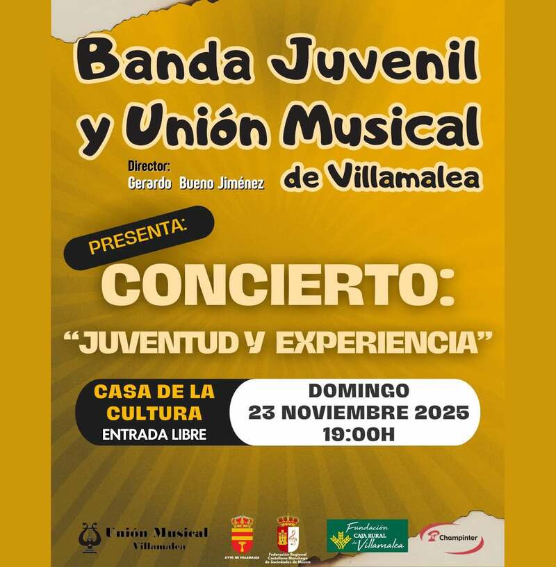 Villamalea celebrará el concierto Juventud y experiencia el domingo 23 de noviembre a las 19:00 horas en la Casa de la Cultura, una propuesta que reunirá a la Banda Juvenil y a la Unión Musical de Villamalea en un encuentro intergeneracional preparado con motivo de Santa Cecilia. Además, continúa la semana de cine organizada por el Cine Club La Clave, con actividades que se desarrollarán del 21 al 29 de noviembre. La programación incluye la presentación del cortometraje Aer de Josué Vergara el viernes 21 a las 19:30 horas; la proyección de Sorda el sábado 22 a las 18:30 horas; y la sesión infantil Mi primer Abycine el domingo 23 a las 12:00 horas.