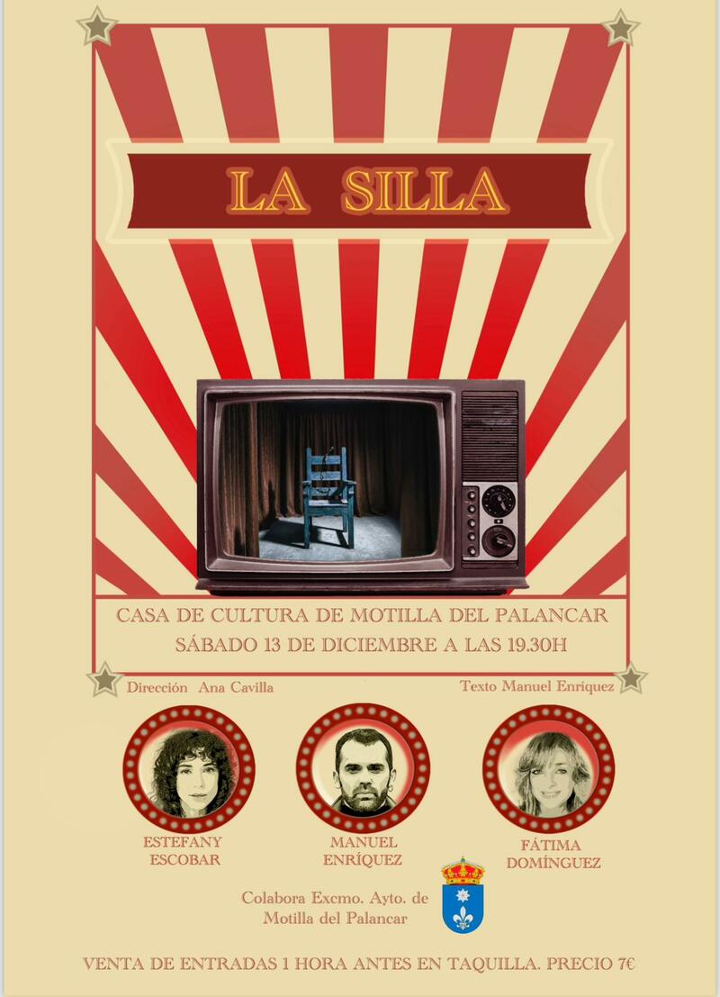 La Casa de Cultura acogerá ese mismo sábado, a las 19:30 horas, la representación de La Silla, una comedia de la compañía Cachino Produce que ofrece una mirada crítica y humorística sobre el funcionamiento real de un programa de televisión en directo. El texto es de Manuel Enríquez, quien también forma parte del reparto junto a Estefany Escobar y Fátima Domínguez, bajo la dirección de Ana Cavilla. Las entradas tendrán un precio de 7 euros y podrán adquirirse en taquilla una hora antes del inicio de la función.