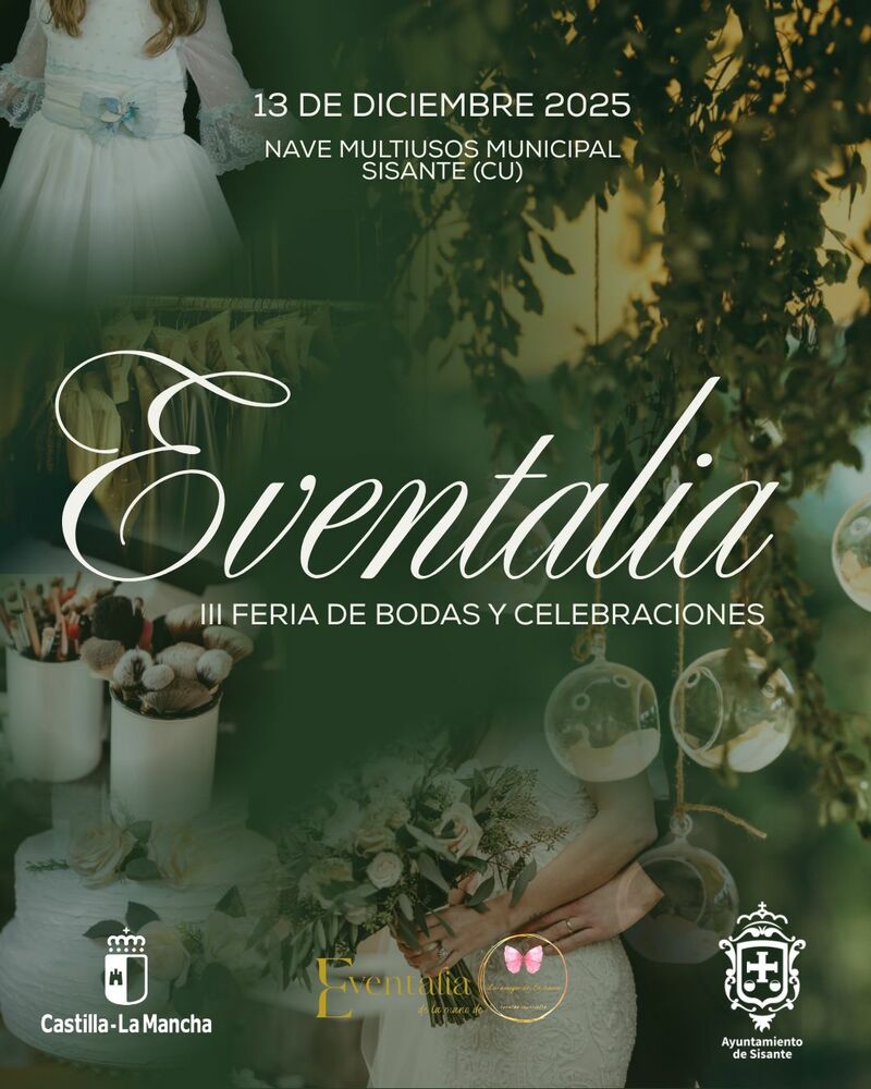La nave multiusos acogerá el sábado 13 de diciembre, a partir de las 11:00 horas, la III edición de Eventalia, la feria de bodas y celebraciones. El evento reunirá a profesionales de distintos ámbitos relacionados con la organización de eventos, como moda, decoración, fotografía, maquillaje y servicios especializados, con el objetivo de mostrar tendencias actuales y facilitar la preparación de celebraciones familiares.