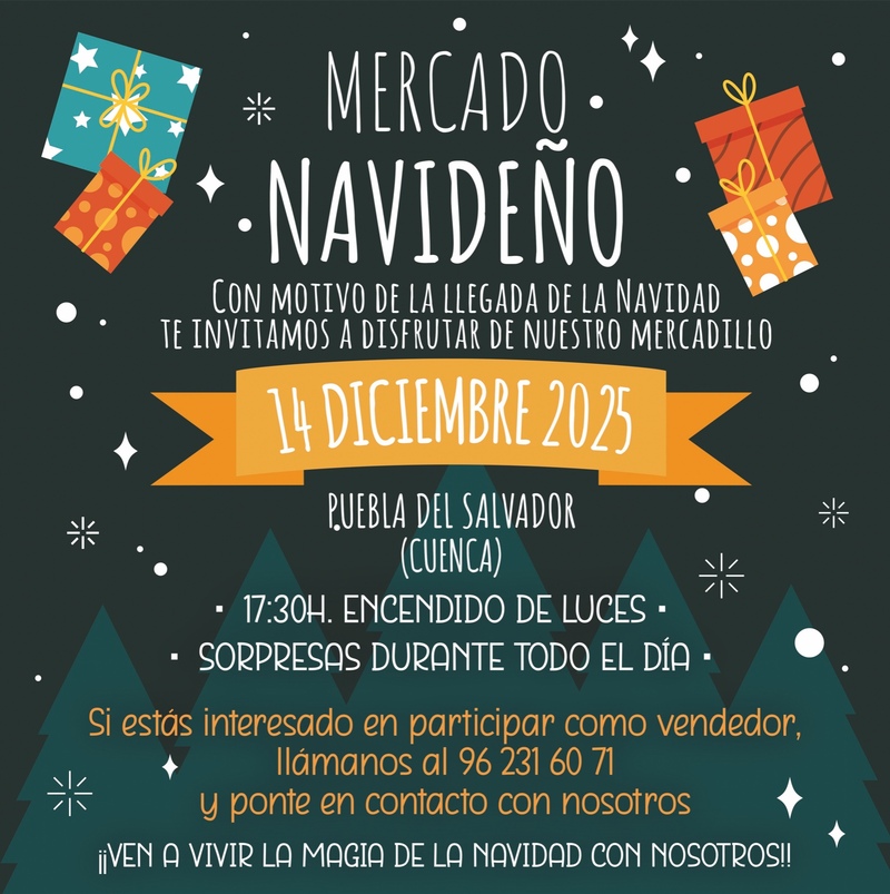 El sábado 13 de diciembre, de 11:00 a 21:00 horas, se celebrará la XIII edición del Mercadillo Solidario Navideño en el EMPE “Felipe VI”. La jornada incluirá actuaciones, venta de artículos navideños, cuentacuentos, bingo, servicio de cafetería, tapas y comida solidaria, con el objetivo de recaudar fondos a beneficio de Cáritas Parroquial y el Voluntariado de la Caridad de San Vicente de Paúl.