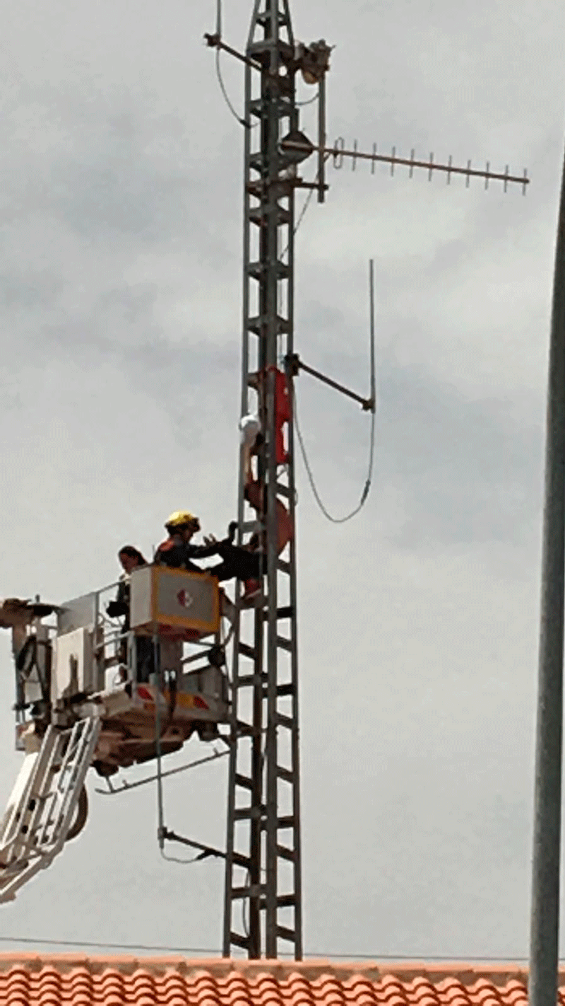 Vídeos y fotos del hombre encaramado a lo alto de la torreta cedidas por los vecinos de la localidad.