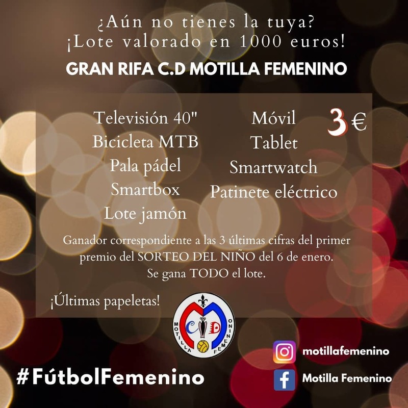 El Motilla Femenino ha organizado una rifa con un lote de premios valorado en 1.000€ ¿Aún no tienes la tuya? ¡No es tarde! Aún puedes comprar las últimas papeletas de la GRAN RIFA que han preparado. Y sí resultas ganador.... ¡te llevas TODO el lote!
