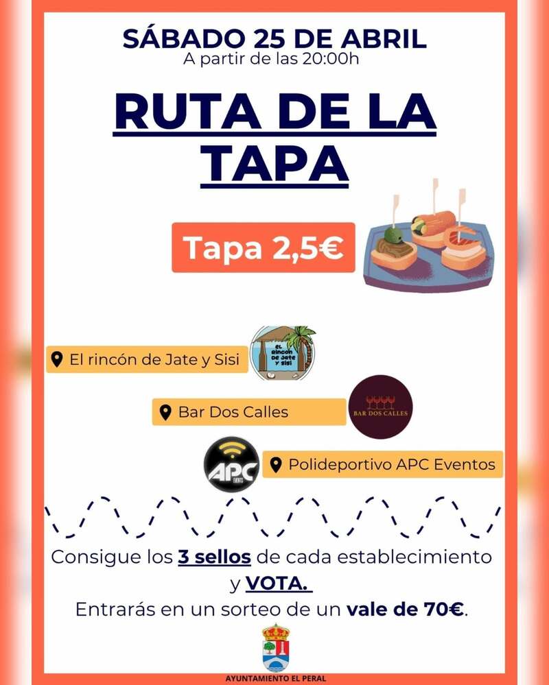 El municipio de El Peral celebrará el próximo sábado 25 de abril una nueva edición de la esperada Ruta de la Tapa, un evento gastronómico que reunirá a vecinos y visitantes desde las 20:00 horas. Con tapas a 2,50 euros, participación de establecimientos locales y un sorteo de un vale de 70 euros.