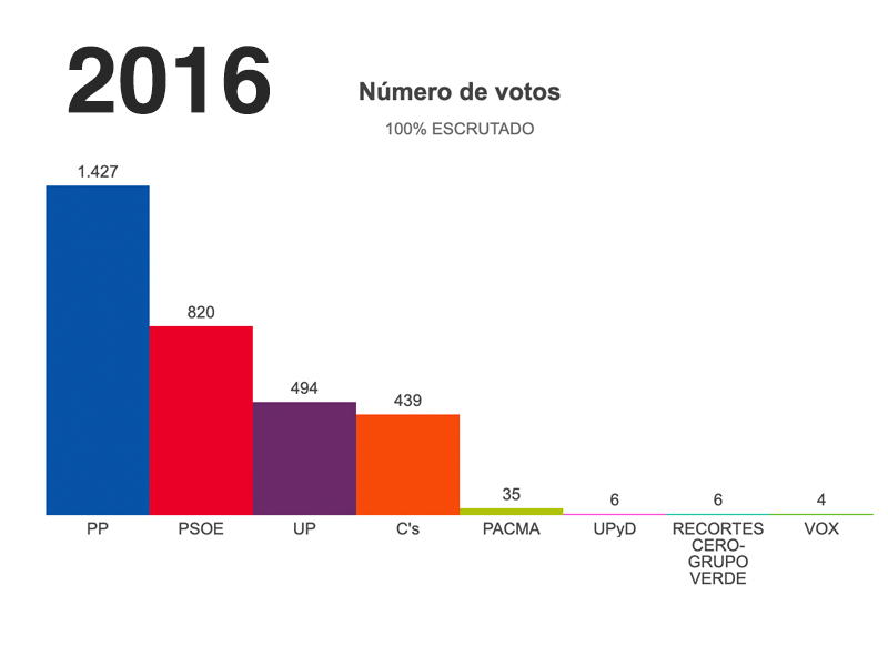 La irrupción de VOX como una fuerza importante en el municipio se consolida, el gran número de apoyos lo pone casi a la altura del PP.