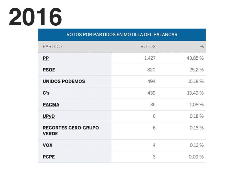 ¿Sabes a qué partido se ha votado más en Motilla?