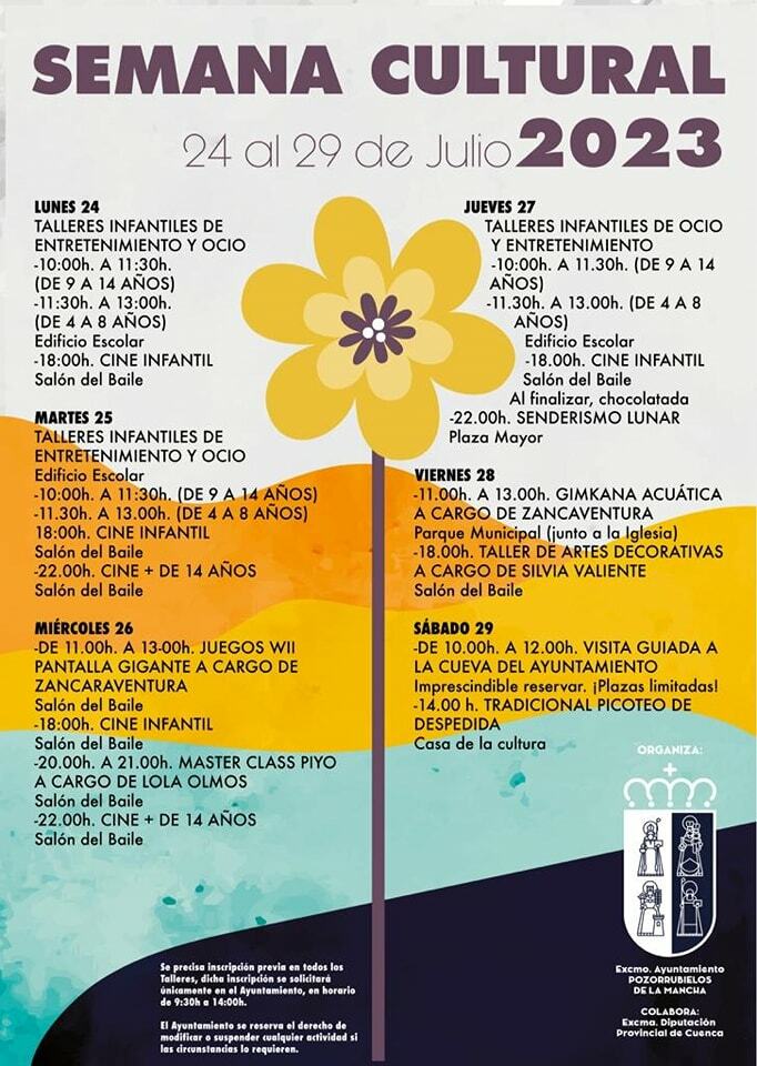 El Excmo. Ayuntamiento de Pozorrubielos de la Mancha se reserva el derecho de modificar o suspender cualquier actividad si las circunstancias lo requieren, pero se espera que la semana esté llena de momentos inolvidables y enriquecedores para todos los asistentes. ¡No te pierdas esta emocionante Semana Cultural llena de diversión y aprendizaje!