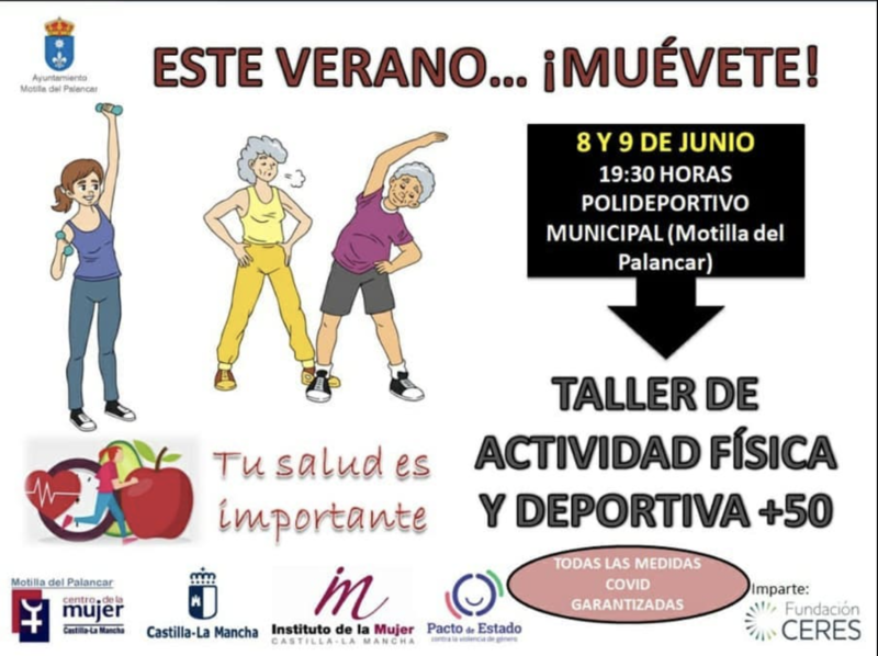 Durante el martes 8 y miércoles 9 de junio en el Polideportivo Municipal de Motilla del Palancar se desarrollará un taller de actividad física y deportiva para las mujeres de más de 50 años. En ambos días se garantiza las medidas sanitarias oportunas para evitar contagios de coronavirus.