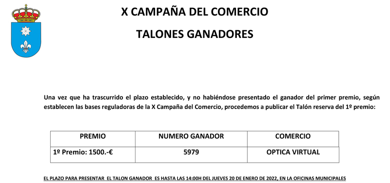Por ello el Ayuntamiento ha procedido a anunciar el talón de reserva con el nuevo número ganador.