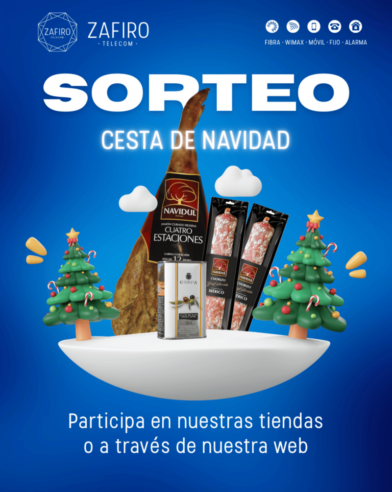 Este sorteo navideño se suma a las iniciativas con las que Zafiro Telecom busca celebrar estas fechas de una forma especial, ofreciendo la posibilidad de ganar una cesta gourmet y disfrutar de la Navidad con un premio pensado para compartir en la mesa.