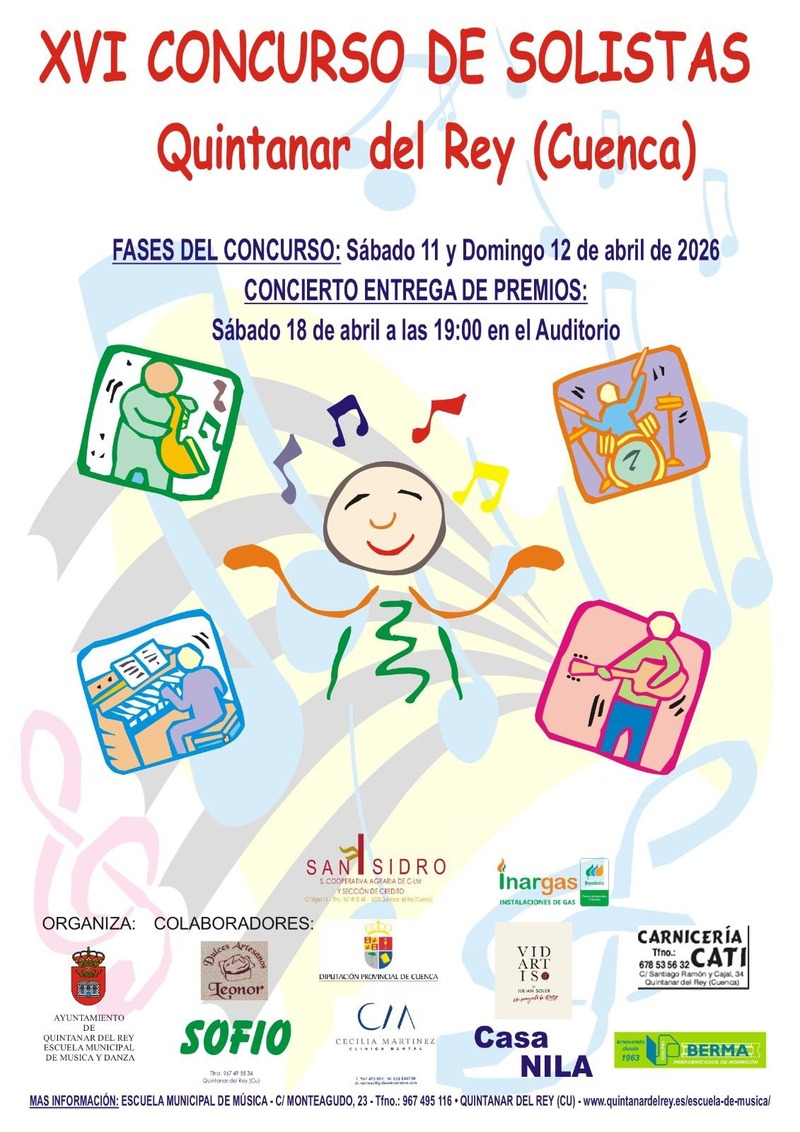 La actividad musical continuará en Quintanar del Rey, donde se celebrará el XVI Concurso de Solistas durante el sábado 11 y domingo 12 de abril.