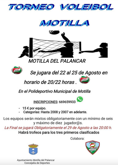 El Club Voleibol Motilla ha anunciado el torneo de voleibol que tendrá lugar entre el 22 y el 25 de agosto en el polideportivo municipal.