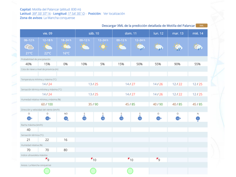 Para la zona de Motilla del Palancar, la previsión del fin de semana parece traer mejores temperaturas y menos lluvias, aunque la semana que viene podrían volver las tormentas: