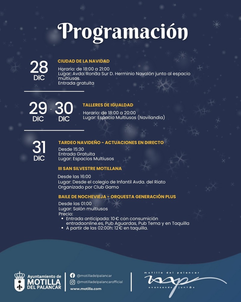 El 31 de diciembre Motilla despedirá el año con un tardeo navideño, entrada gratuita y actuaciones en directo desde las 15:30.