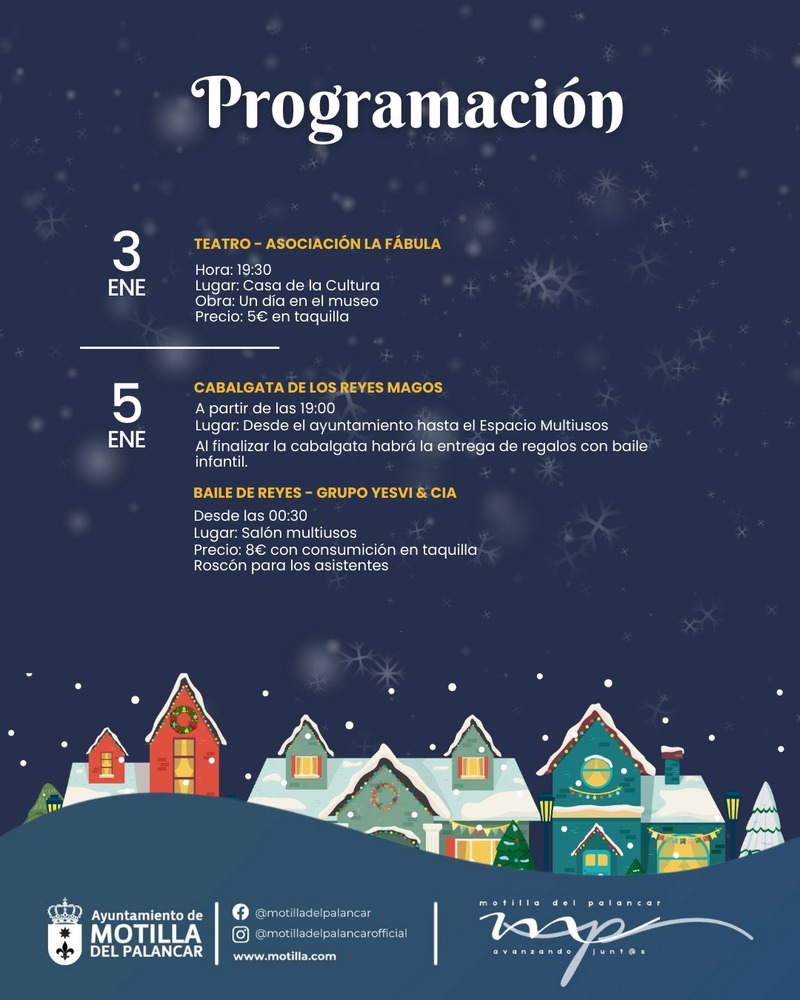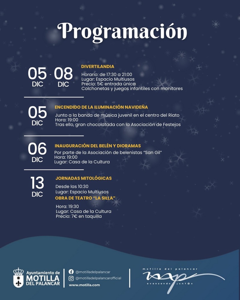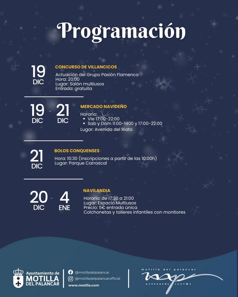 El Ayuntamiento de Motilla del Palancar ha presentado la programación oficial de Navidad para este año, una agenda repleta de propuestas culturales, festivas y familiares que se desarrollarán en distintos espacios municipales durante más de un mes.