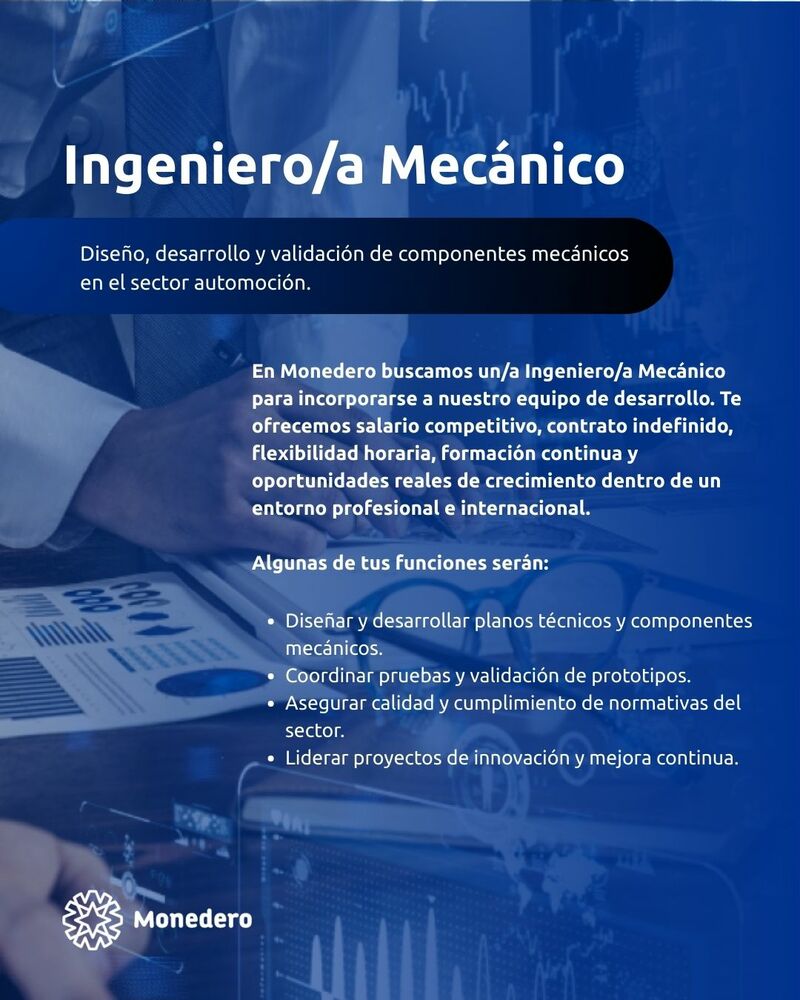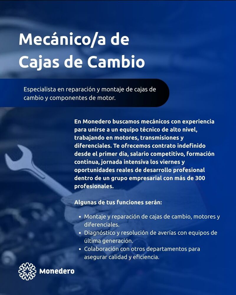 AC Monedero, empresa referente en el sector de la electromecánica y con más de 25 años de trayectoria, continúa su crecimiento y busca incorporar nuevos profesionales a su equipo. La compañía ha abierto varias vacantes en áreas clave como ingeniería, logística, marketing, mecánica y gestión de productos, ofreciendo estabilidad laboral, formación continua y oportunidades de desarrollo en un entorno internacional.