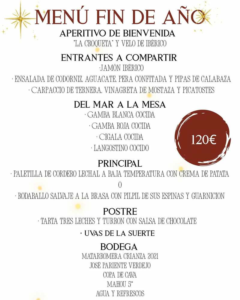 El menú de Fin de Año, cuidadosamente elaborado y con un precio de 120 euros por persona, incluye un aperitivo de bienvenida con “La croqueta” y velo de ibérico, seguido de una cuidada selección de entrantes a compartir, entre los que destacan el jamón ibérico, la ensalada de codorniz con aguacate, pera confitada y pipas de calabaza, o el carpaccio de ternera con vinagreta de mostaza y picatostes.
